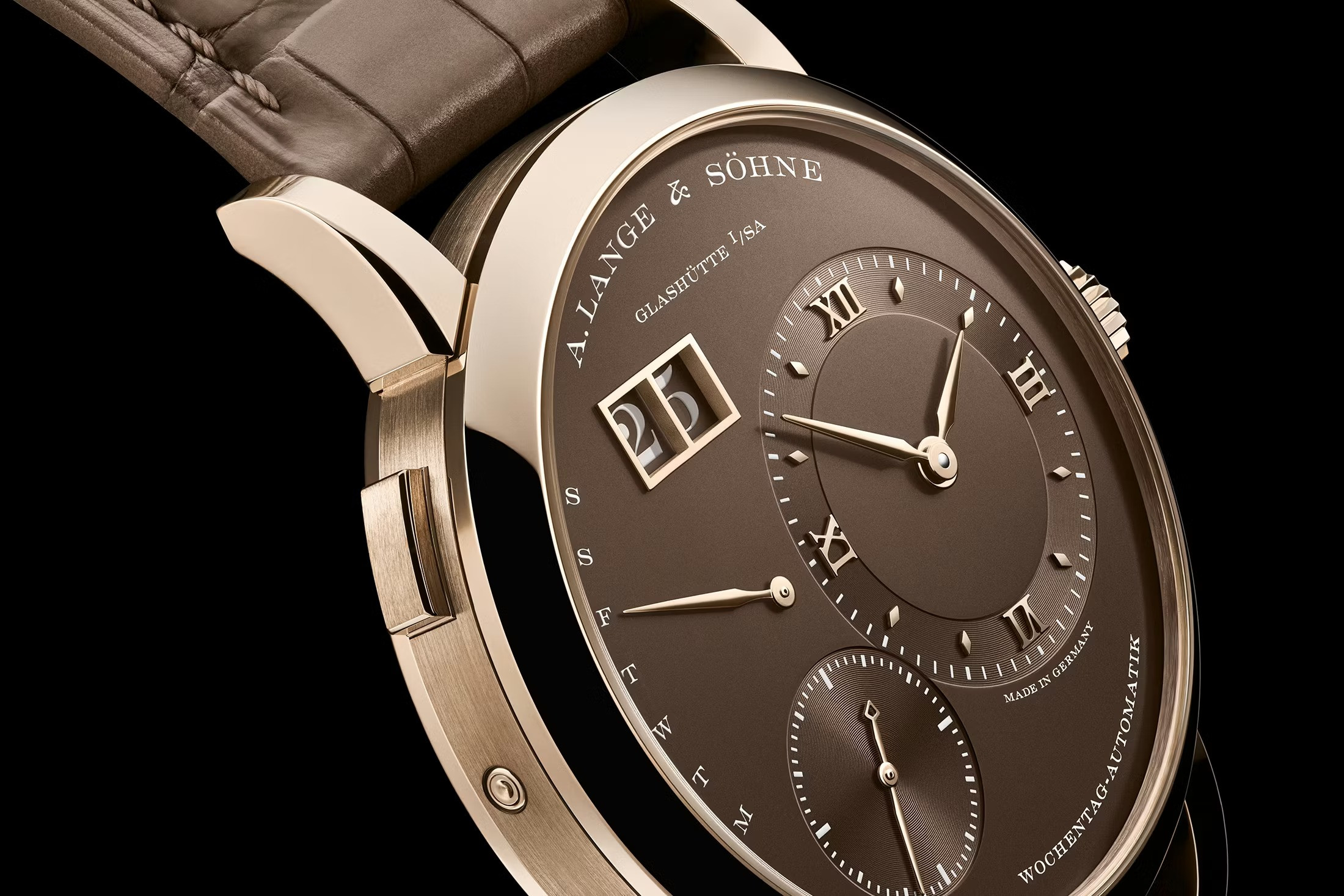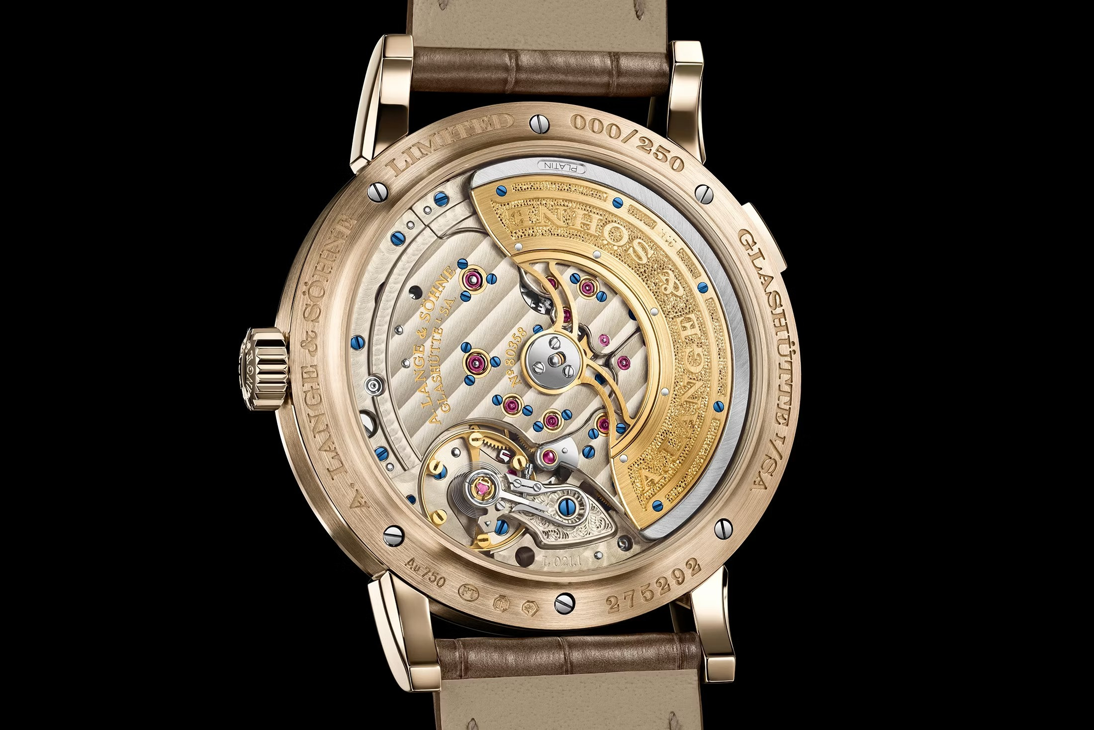 Новинка предлагается с прошитым вручную серо-коричневым ремешком из кожи аллигатора, который оснащен пряжкой из Honeygold. Выпуск лимитирован серией 250 экземпляров. Часы будут доступны в бутиках A. Lange & Söhne.