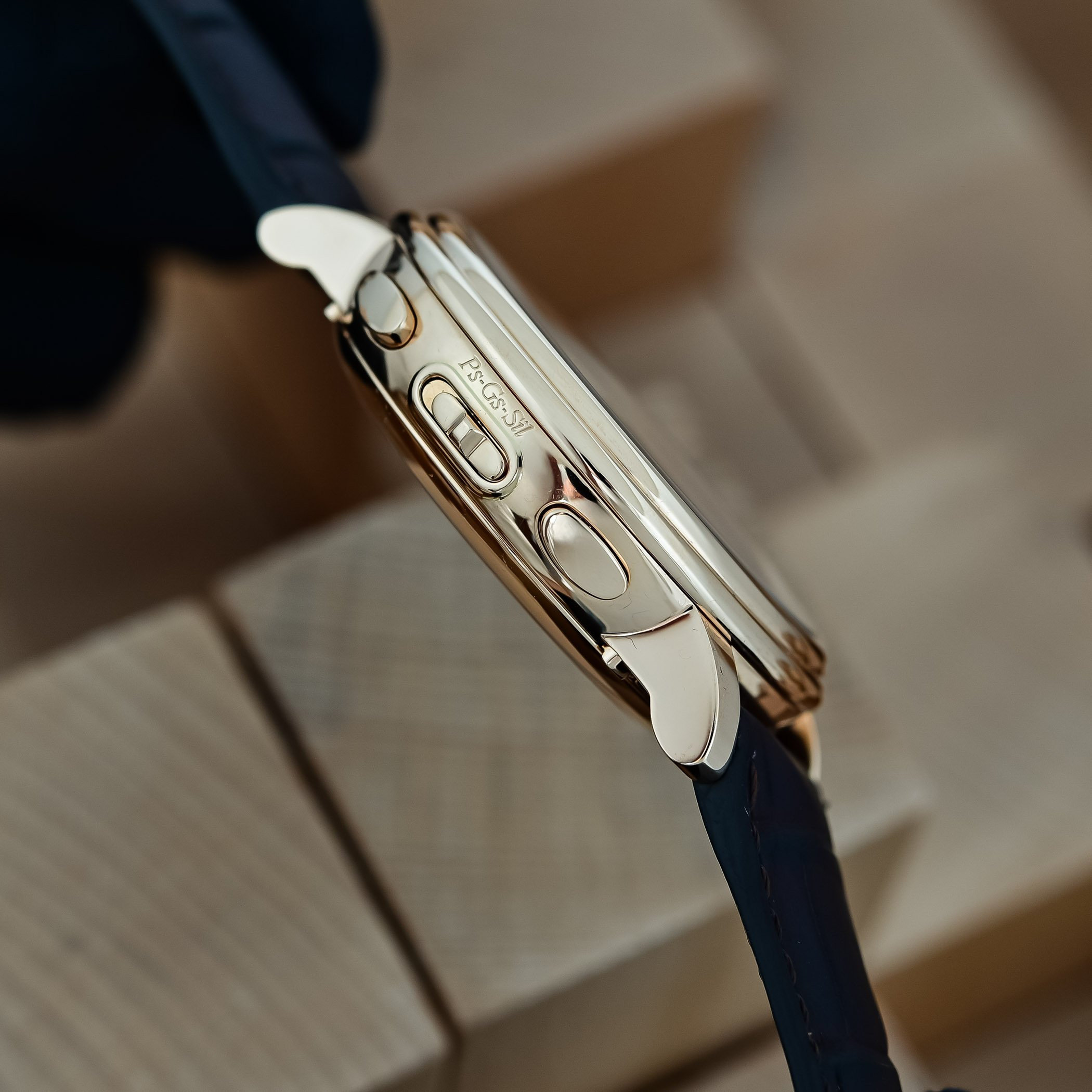 15GSQ в названии модели – это калибр с ручным подзаводом, который обеспечивает работу часов. Он оснащен кремниевой спиралью. При частоте колебаний баланса 4 Гц этот калибр гарантирует до 4 дней запаса хода для базового механизма, а также 12 и 14 часов непрерывной работы механизма боя в режиме большой и малый бой. Запас хода можно отследить на тыльной стороне часов. Заводятся разные части механизма вращением заводной головки в разные стороны.