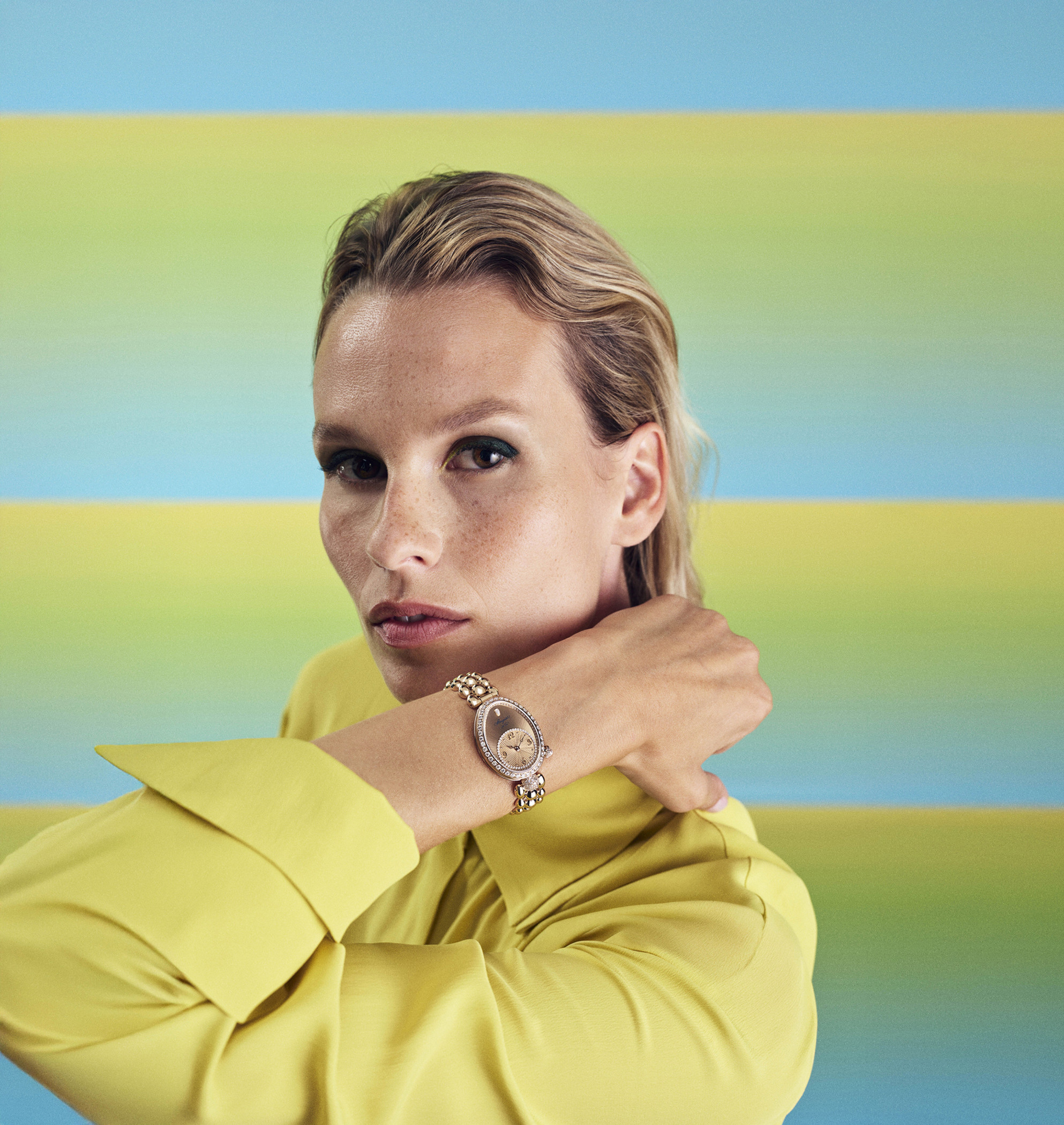 Браслет оснащен эксклюзивной невидимой застежкой. Он дополняет две из четырех версий модели 9935, в одной из которых циферблат инкрустирован 1387 бриллиантами и 1 синим сапфиром.
