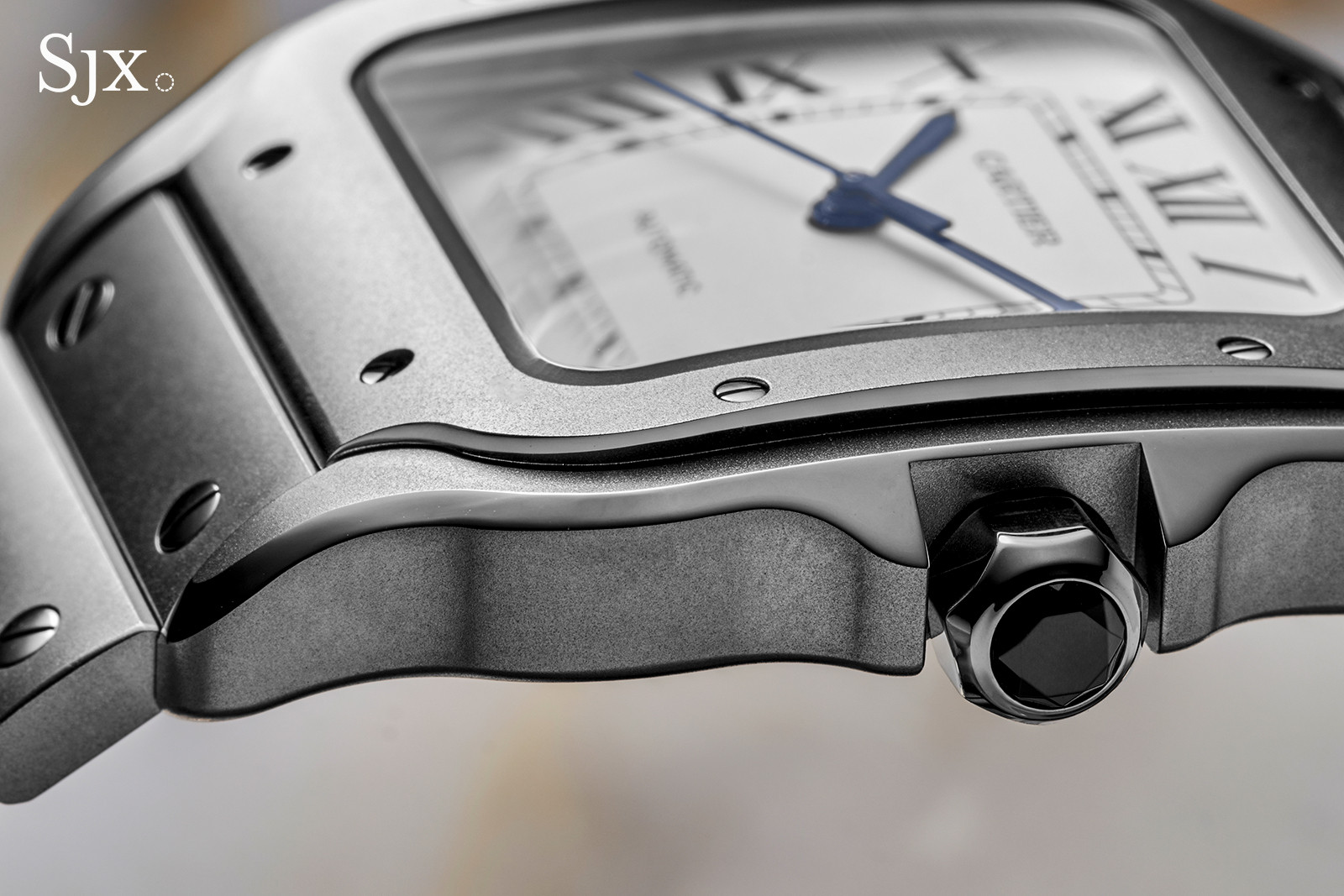 Как и все современные модели Santos, титановая версия оснащена механизмом «QuickSwitch», который позволяет легко снимать и менять браслет. Чтобы отсоединить браслет или ремешок от корпуса, достаточно нажать на язычок на задней стороне.