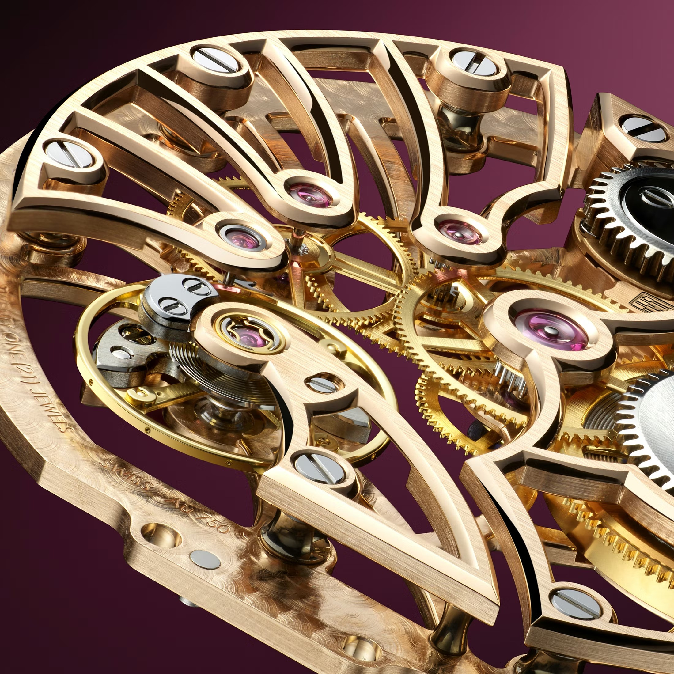 Механизм, разработанный и собранный в стенах La Fabrique du Temps Louis Vuitton, заводится вручную и при балансовой частоте 4 Гц обладает 65-часовым запасом хода. Собран механизм из 141 детали, включая 21 камень, а его толщина не превышает 3,1 мм. Изюминка этой «начинки» в том, что платина и мосты механизма изготовлены из розового золота.