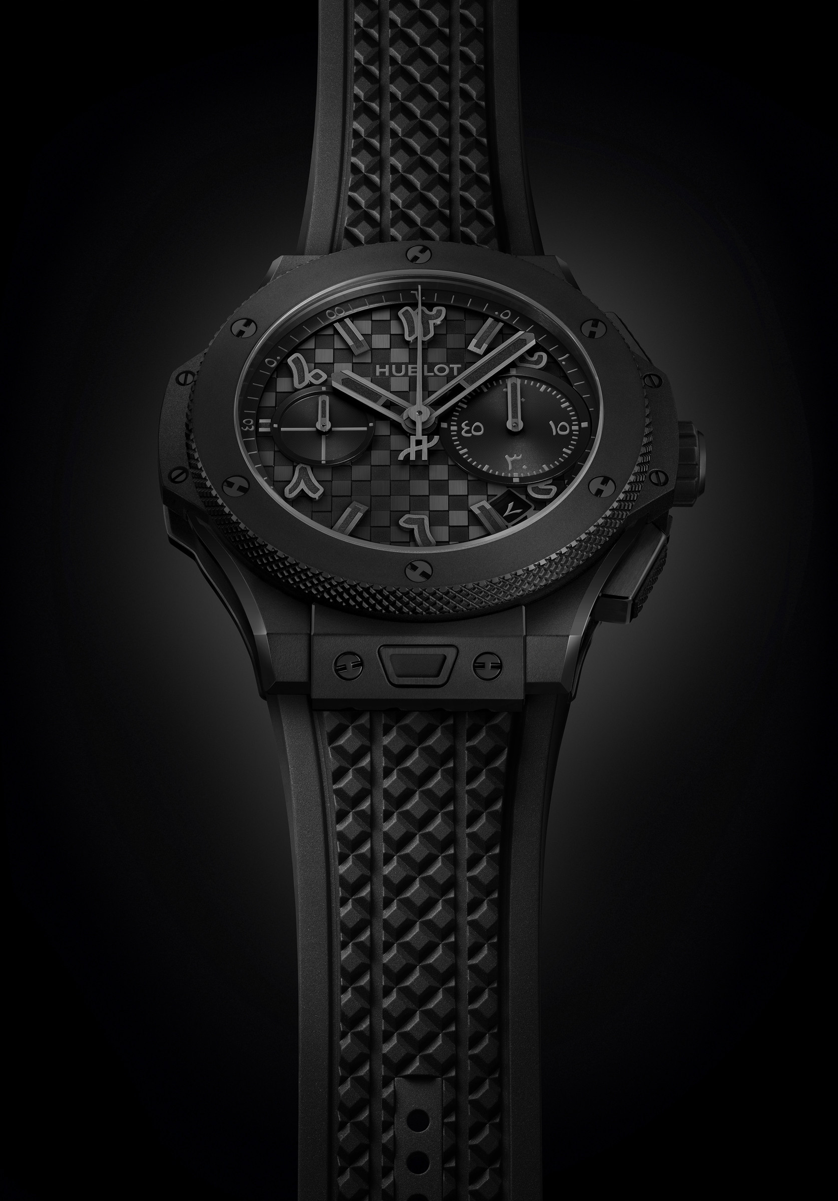Лимитированная серией 10 экземпляров модель Hublot Big Bang All Black Ahmed Seddiqi 75th Anniversary получила корпус из черной керамики и механизм с ротором из 22-каратного золота. Заводная головка и кнопки хронографа титановые, с каучуковым покрытием на заводной головке и каучуковыми вставками на кнопках.