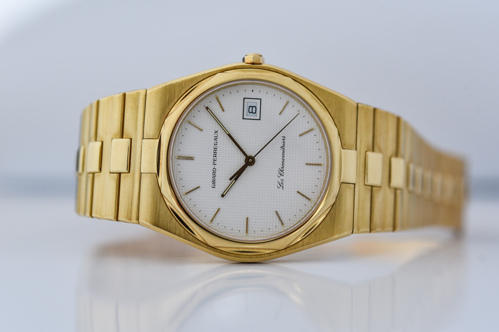 Помимо того, что 1970-е годы для швейцарской часовой отрасли стали периодом революционных изменений, связанных с появлением кварцевых часов, в этот же период индустрия переживала преобразования, связанные с появлением новых форм и функций. В частности, именно в это время на свет появились спортивные часы класса люкс с интегрированным браслетом, представленные в ультратонком корпусе.