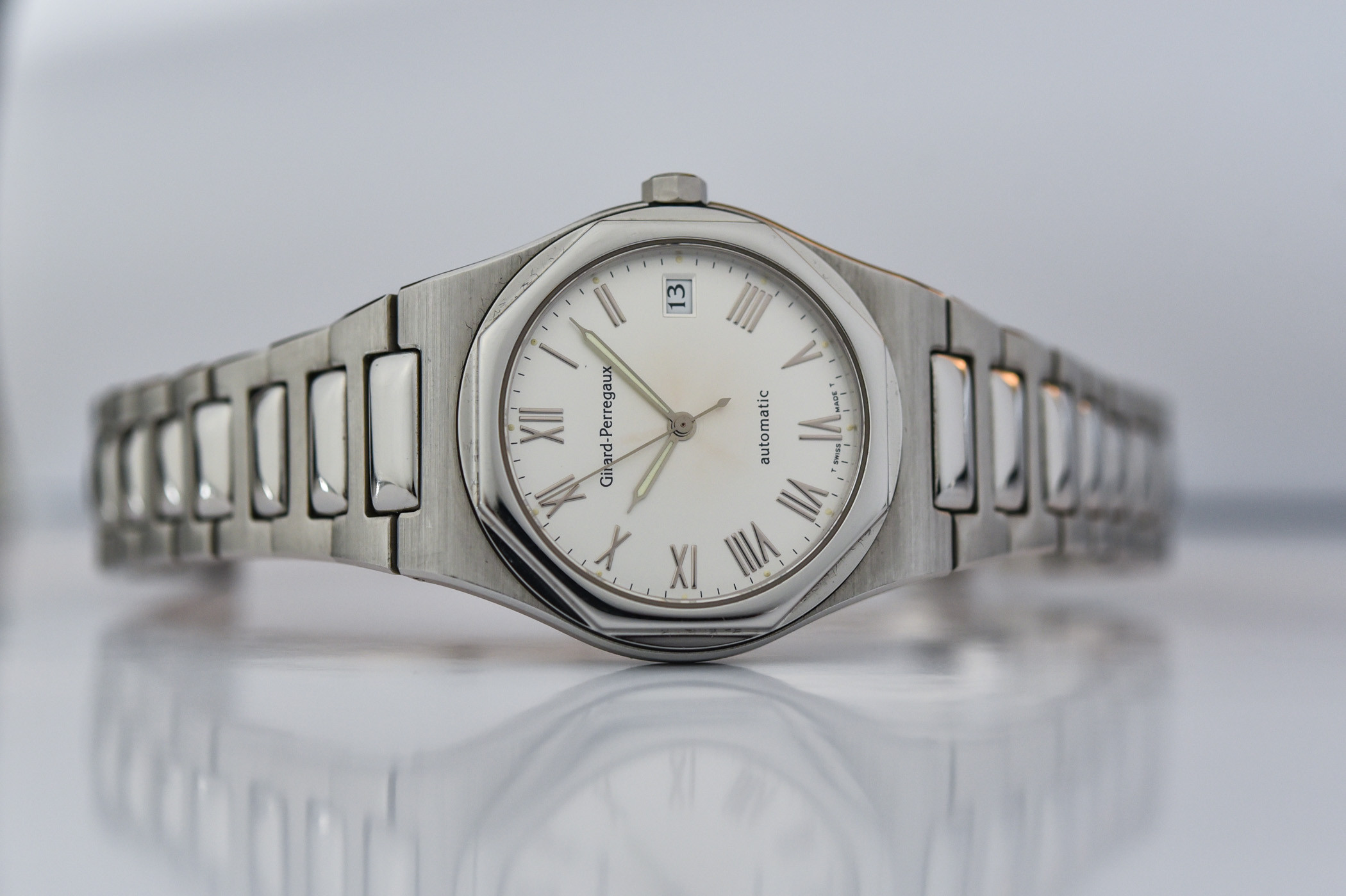 Третье поколение Laureato было представлено в 1995 году и получило переработанный дизайн Джино Макалузо, который возглавил Girard-Perregaux в начале 1990-х годов. Модель была оснащена ультратонким мануфактурным калибром 3000, и это был уже не кварц, а механика (с автоподзаводом), которую в те годы выпускали очень немногие бренды.
