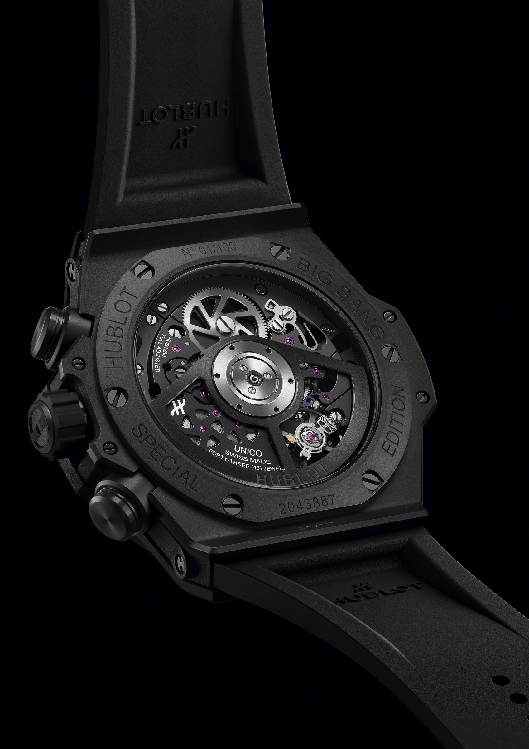 Модель получила корпус из черной керамики с пескоструйной обработкой (42 х 14,5 мм). Винты и кнопки в часах титановые. Задняя крышка керамическая. Заводная головка выполнена из титана с PVD-покрытием и каучуковой накладкой.
