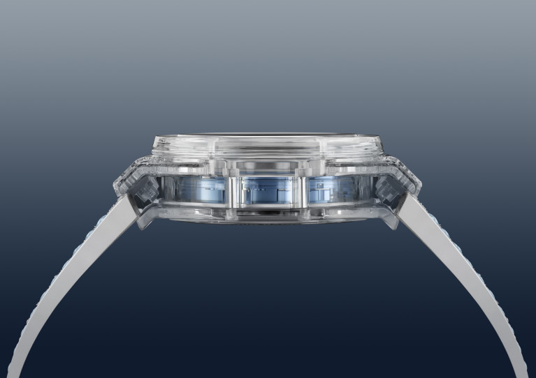 Обе модели получили корпус 42 х 14,5 мм. В одном случае он изготовлен из искусственного сапфира, и эта модель лимитирована серией 30 экземпляров. Вторая версия получила корпус из титана в сочетании с безелем из белой керамики с микроструйной обработкой. Лимит на эту модель – 200 экземпляров.