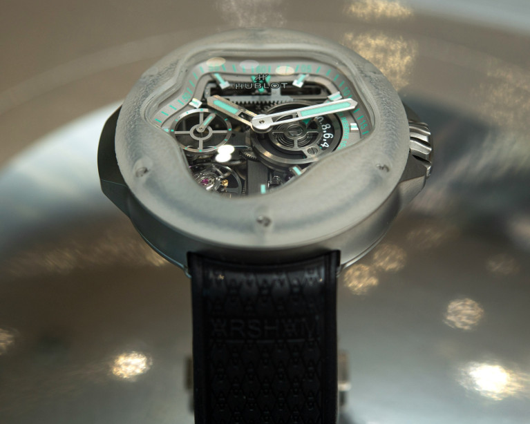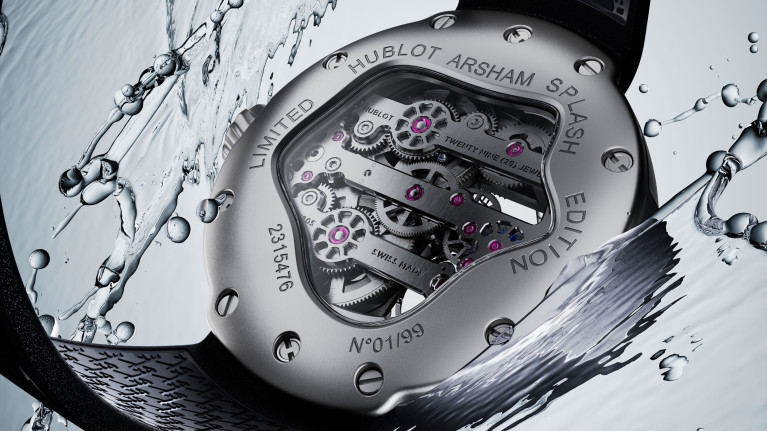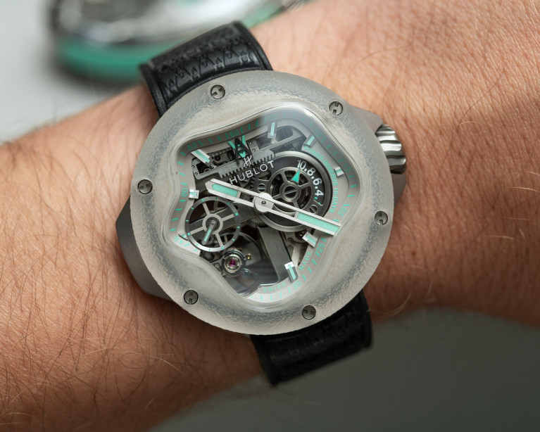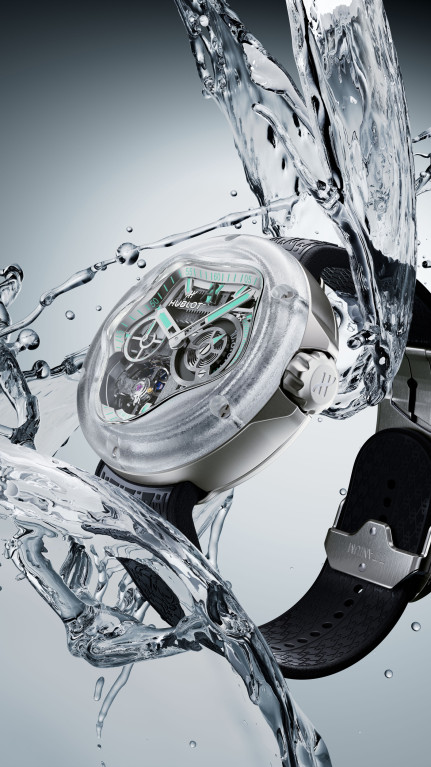 Компания Hublot продолжает сотрудничество с известным американским художником Дэниэлом Аршамом. Напомним, первым продуктом этой коллаборации стали эпатажные карманные часы-трансформер с корпусом в форме капли. Новинка продолжает эту тему. Форма циферблата у новой модели MP-17 MECA-10 напоминает брызги воды, а прозрачность конструкции часов передает прозрачность и движение воды.