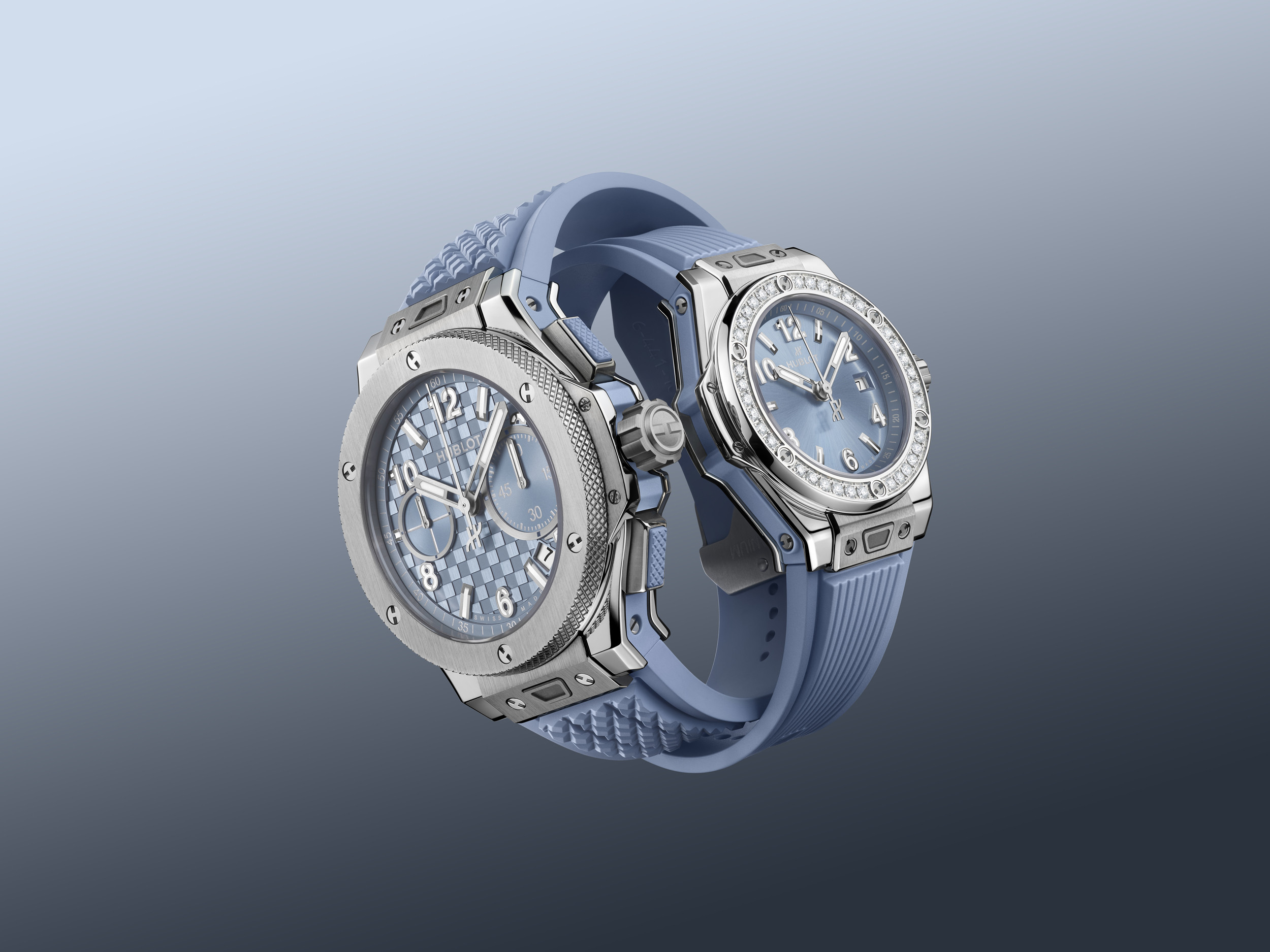 Две пары новинок, в которых ставка сделана на новый для Hublot угольно-голубой цвет. Мужские модели Big Bang Original Unico и Spirit of Big Bang объединяют титановые корпуса 43 и 42 мм и циферблаты с узором, имитирующим переплетение углеродных волокон. Часы комплектуются ремешками из вулканизированного каучука с ромбовидным рисунком. Ориентировочная стоимость моделей составляет €19,300 (Big Bang Original Unico Coal Blue) и €22,800 (Spirit of Big Bang Coal Blue).
