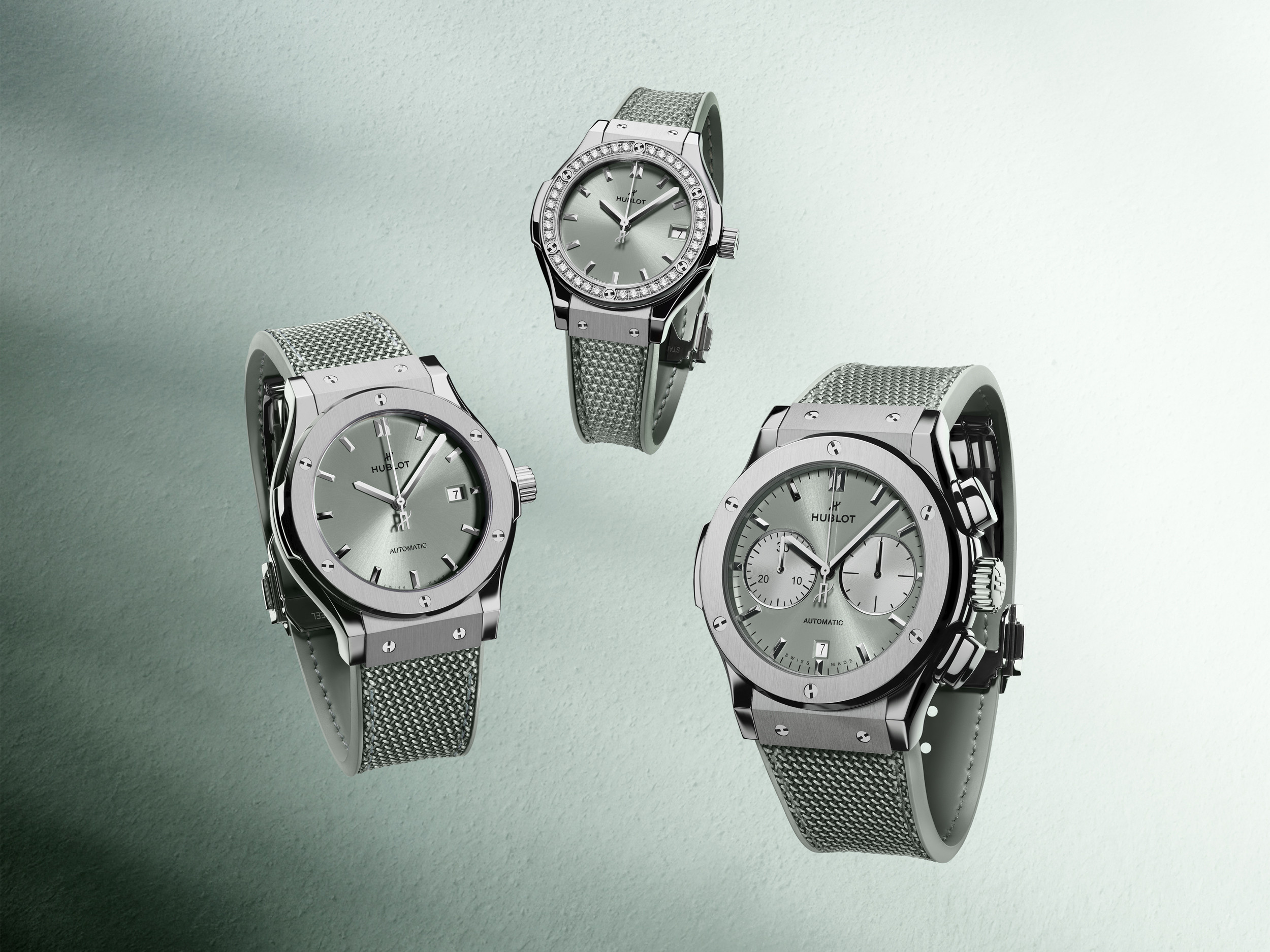Три новинки, которые объединяет шалфейно-зеленый оттенок в дизайне. Часы доступны в трех диаметрах: 33, 42 и 45 мм. Вся тройка получила легкий титановый корпус. В самой маленькой модели из этого трио безель инкрустирован 36 бриллиантами весом 0,8 карата. Изюминка моделей – каучуковый ремешок с тканевой вставкой, рисунок на котором имитирует миланское плетение.