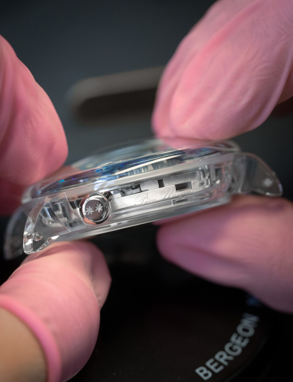 Практически каждая деталь этой модели, включая 611 деталей механизма, изготовлена, собрана и декорирована вручную. Исключение составляют только элементы спуска и 3 особые надписи на часах.