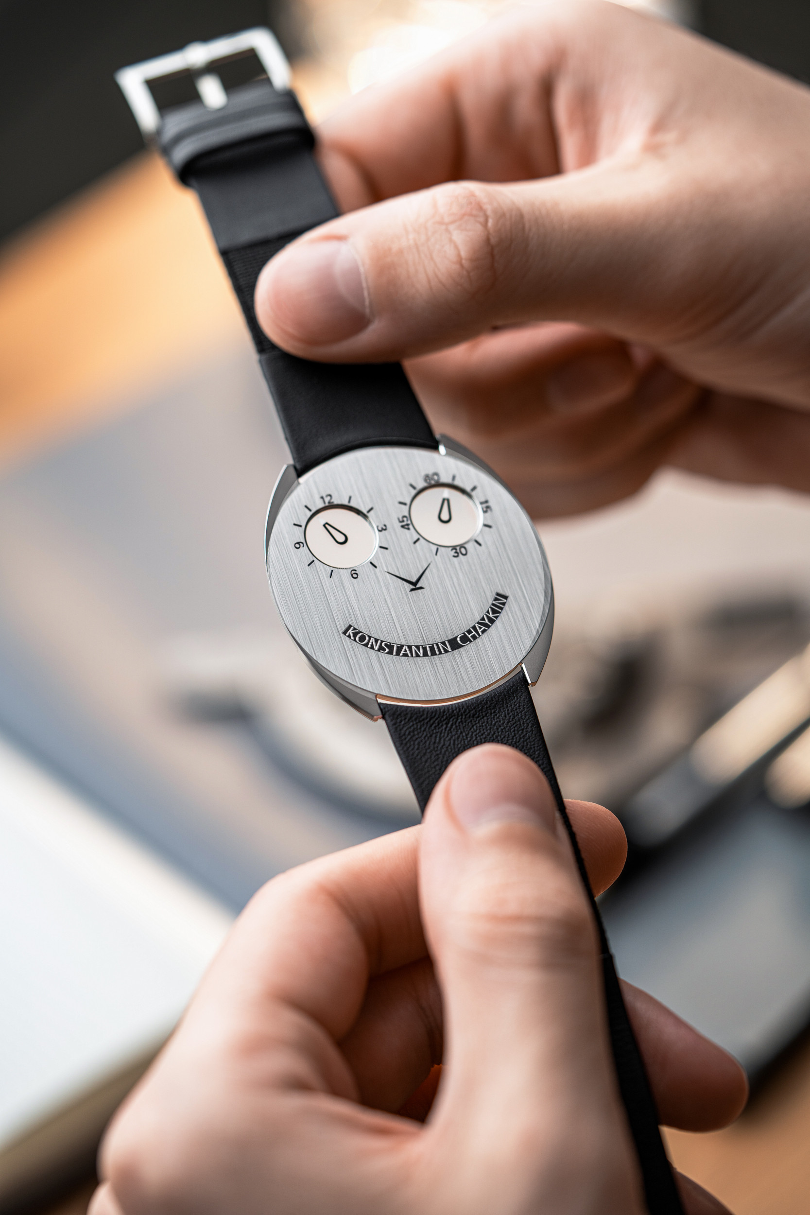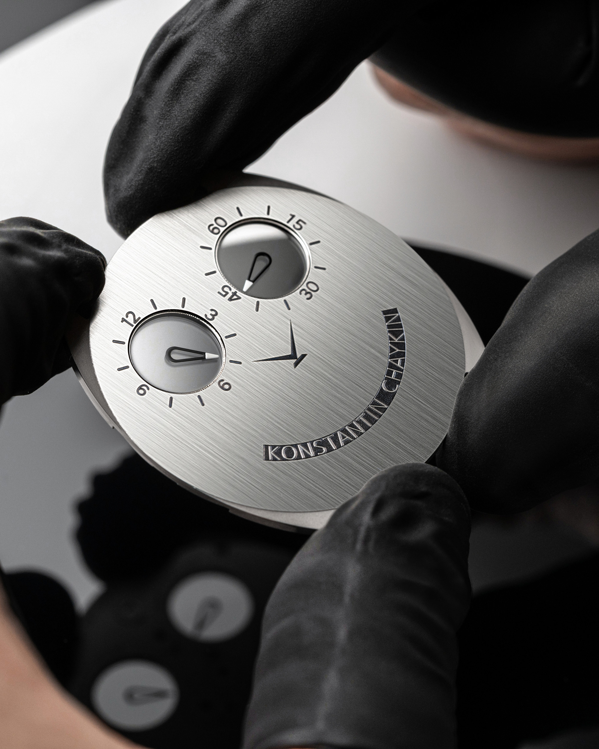 Точность хода новинки вписывается в вилку -15/+20 секунд в сутки. Вместо традиционной заводной головки, которая сделала бы часы толще и визуально тяжелее, Чайкин предлагает 2 оригинальных способа завода часового механизма. Первый – с помощью миниатюрной карбоновой коробки с четырьмя подпружиненными опорами внутри. Для завода и настройки часы вставляются внутрь коробки. Второй способ завод предполагает использование заводного ключа, который вставляется в специальный паз со стороны задней крышки.