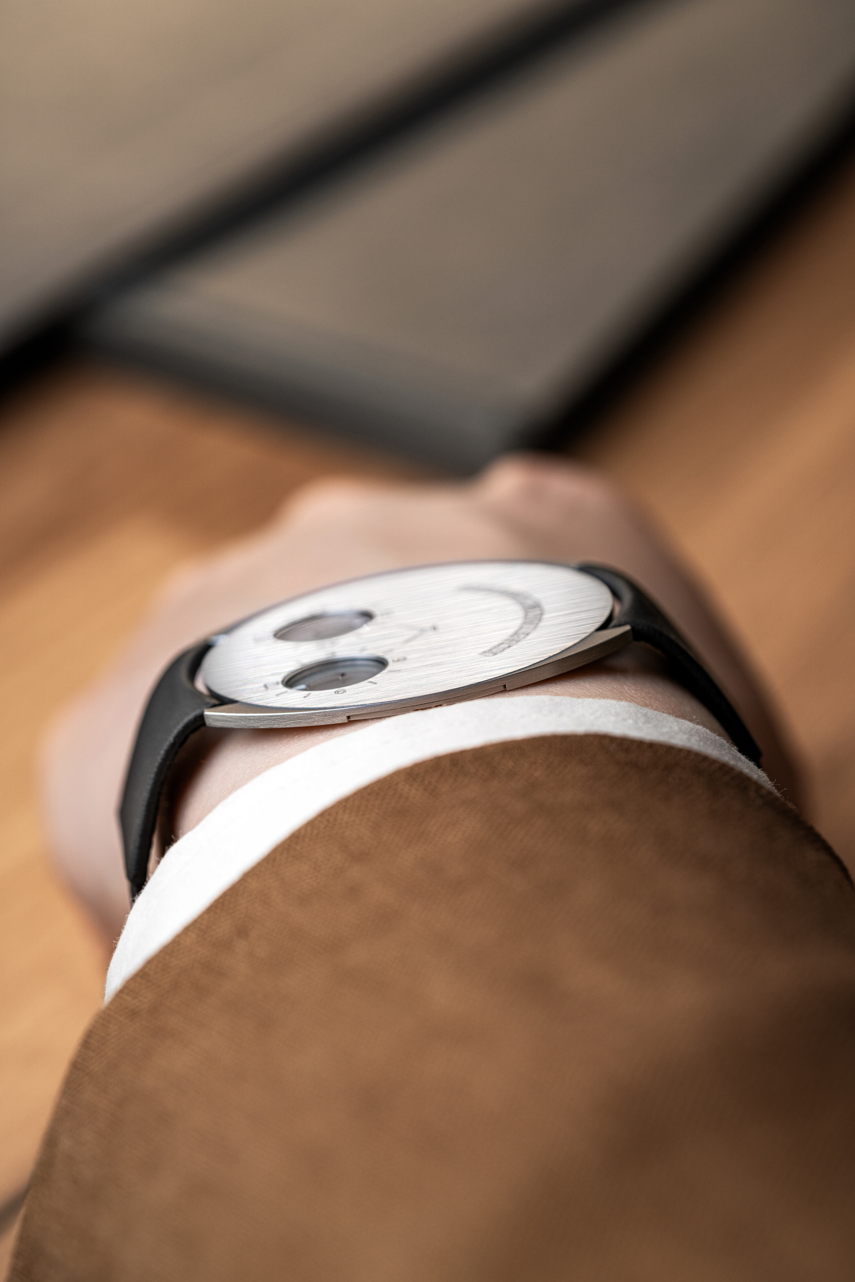 В-третьих, от несерийных прототипов часы унаследовали особый кожаный ремешок с гибкими титановыми супинаторами и эластичными вставками. Запатентованная конструкция ремешка забирает на себя почти всю нагрузку, защищая ультратонкий корпус от повреждений. К корпусу ремешок крепится винтами. Вес модели без ремешка составляет 12,1 грамма.