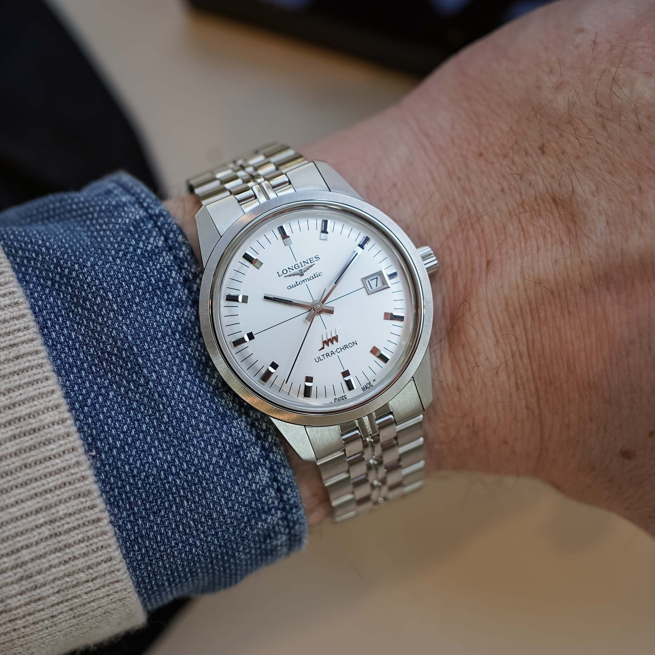 Поскольку эти часы были значительно точнее хронометра, сертифицированного COSC, они получили название Ultra-Chron, т.е. «ультрахронометр». Longines зарегистрировала это название в октябре 1966 года, а уже в конце 1966-го – начале 1967 года часы появились на рынке. Нет никаких сомнений в том, что именно эти часы стали источником вдохновения для новинки, но у новой модели все же есть ряд отличий от исторического прототипа.