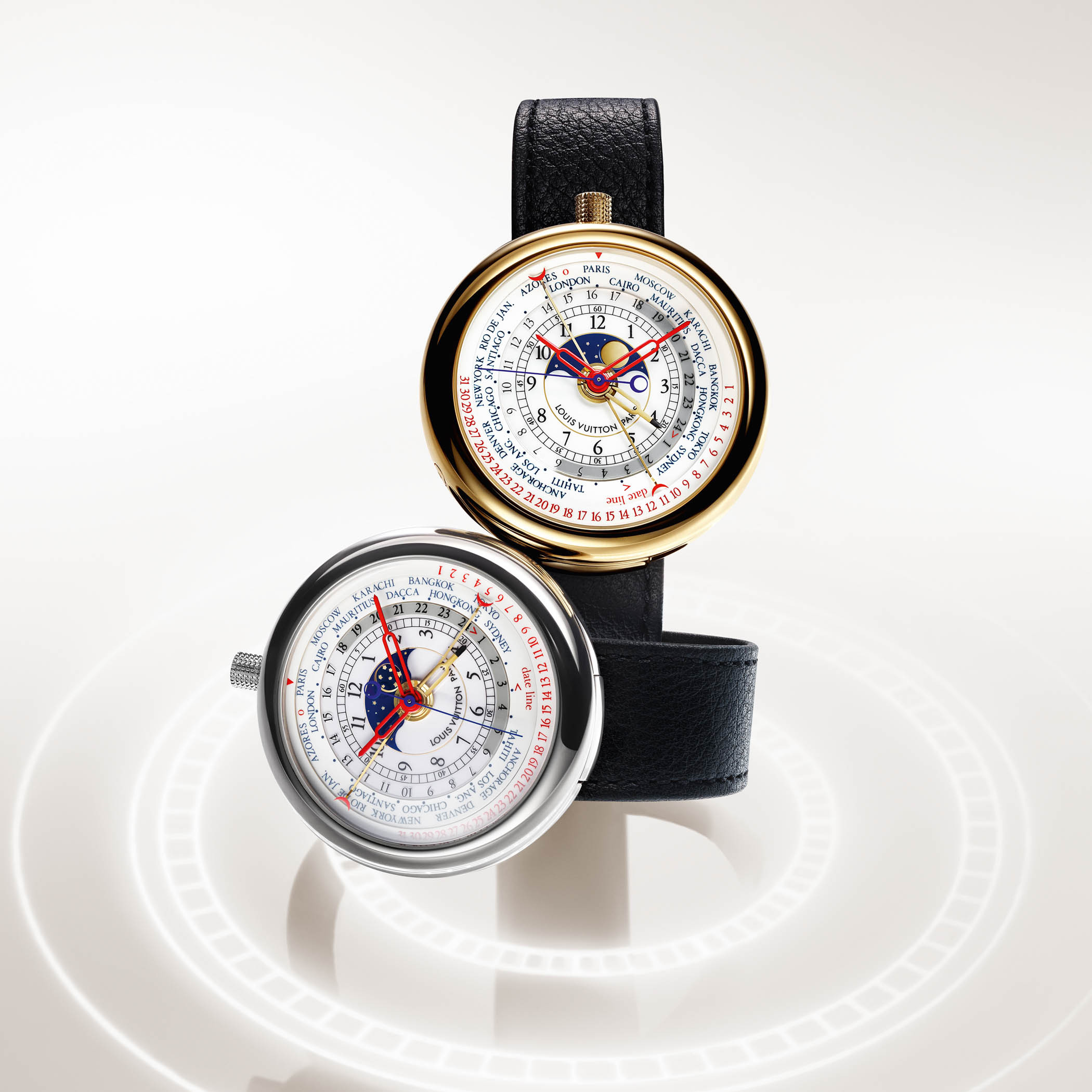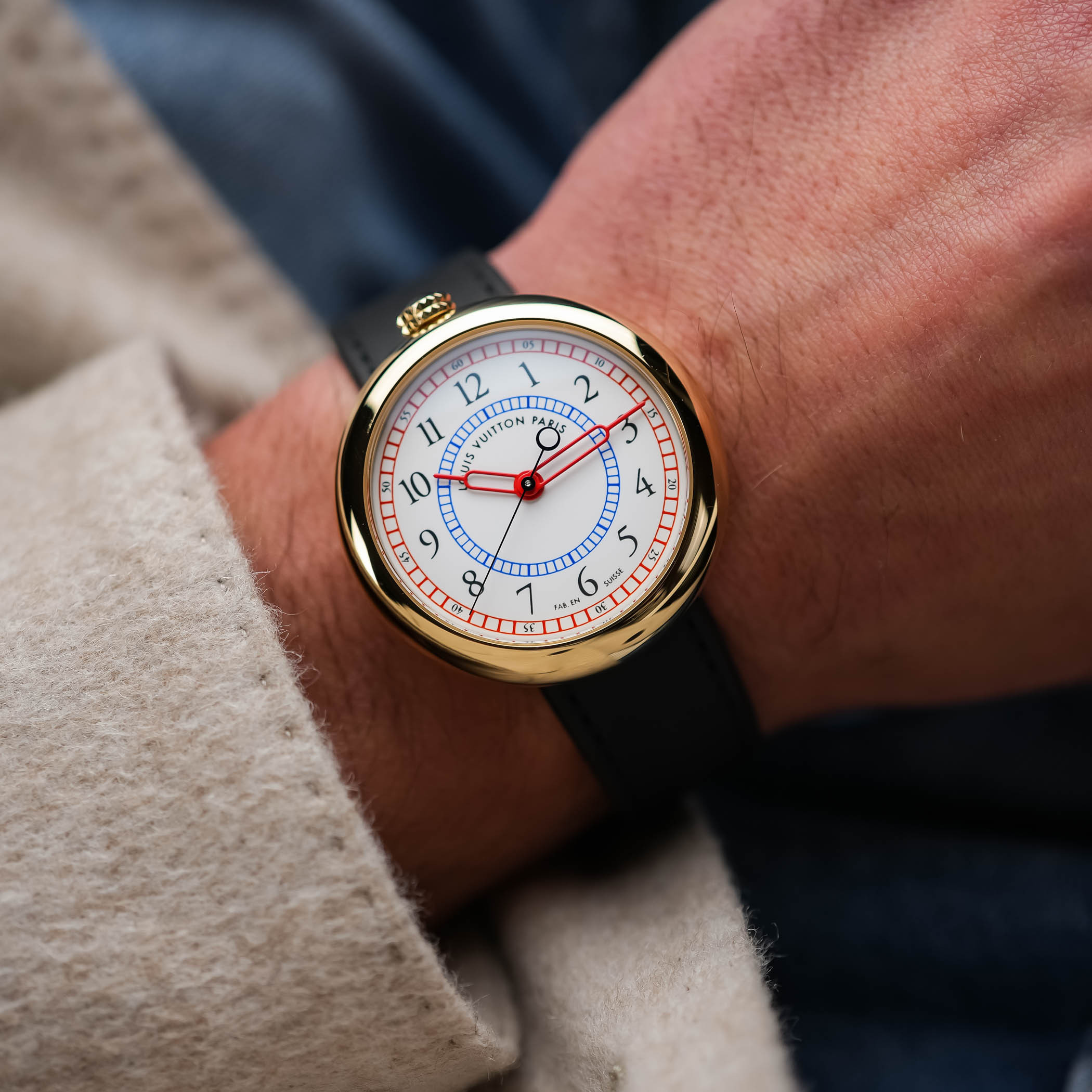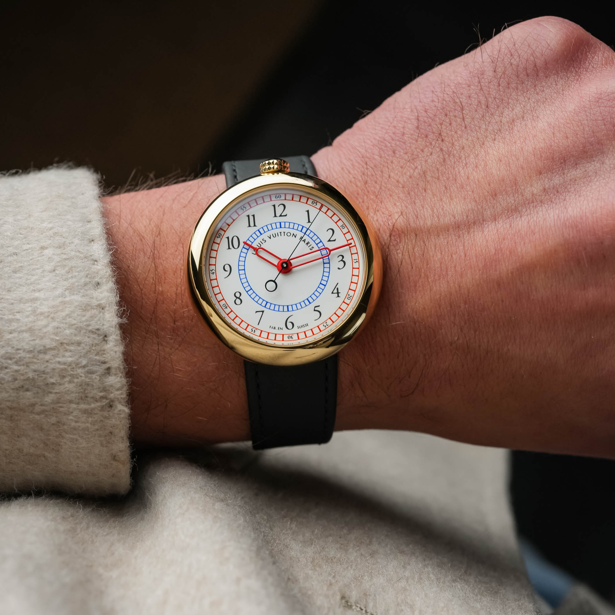 Первые наручные часы Louis Vuitton были созданы совместно с итальянским архитектором Гаэ (Гаэтане) Ауленти. В 1988 году она только-только завершила реконструкцию музея Орсе в Париже своими лампами Pipistrello. По задумке Ауленти часы получились необычными: круглый корпус в форме гальки не имел ушек, а заводная головка была размещена у отметки «12 часов». В таком дизайне модель удивительно напоминала карманные часы, переделанные в наручные.
