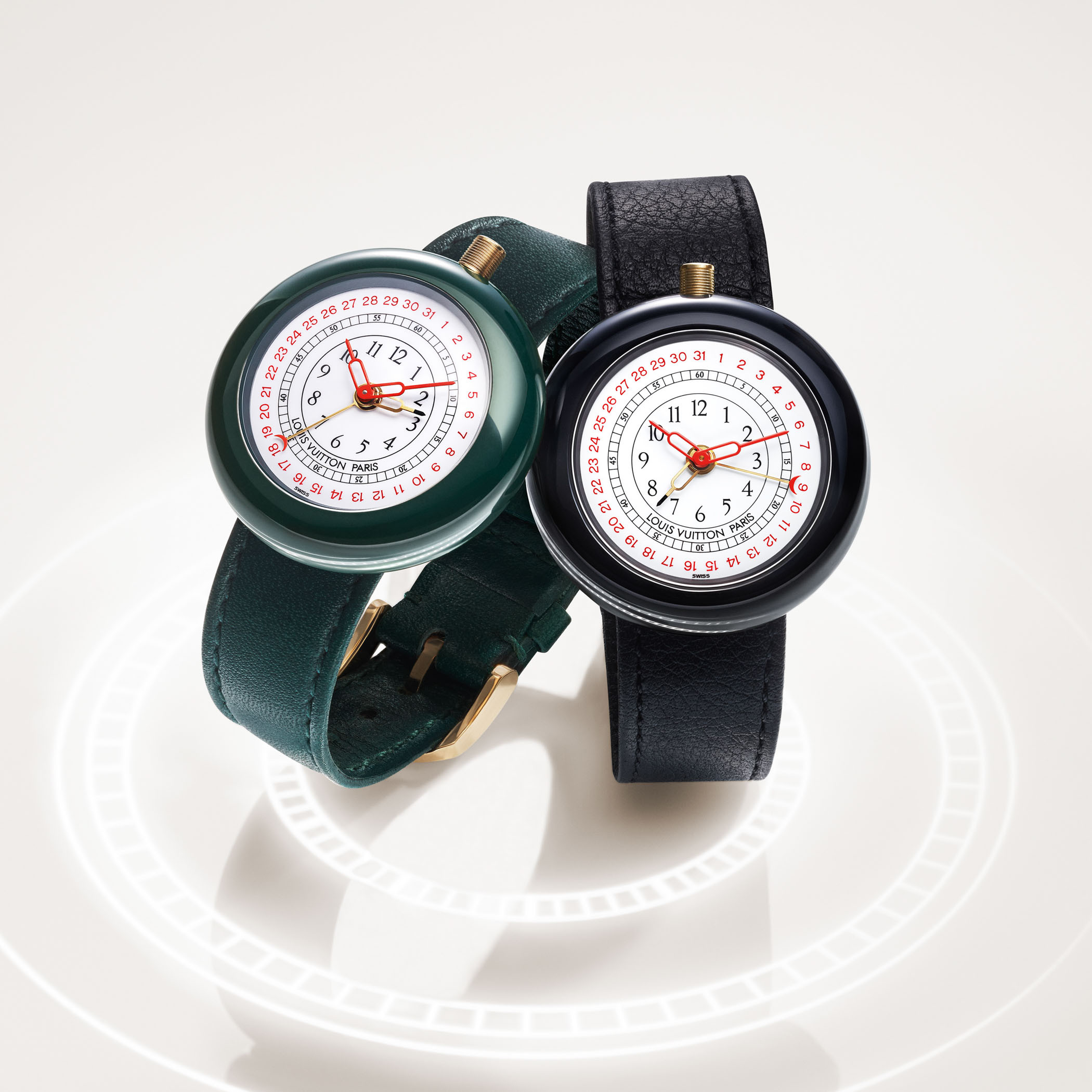Модель LV 2 или Monterey 2 выпускалась в 37-миллиметровом корпусе из черной или зеленой керамики. Материал был для того времени редкостью, но встречался у брендов-экспериментаторов вроде IWC. Эти часы также оснащались кварцевым механизмом, но более простым – он поддерживал индикацию времени, даты и функцию будильника. В дизайне циферблата также сохранились отсылки к теме путешествий.