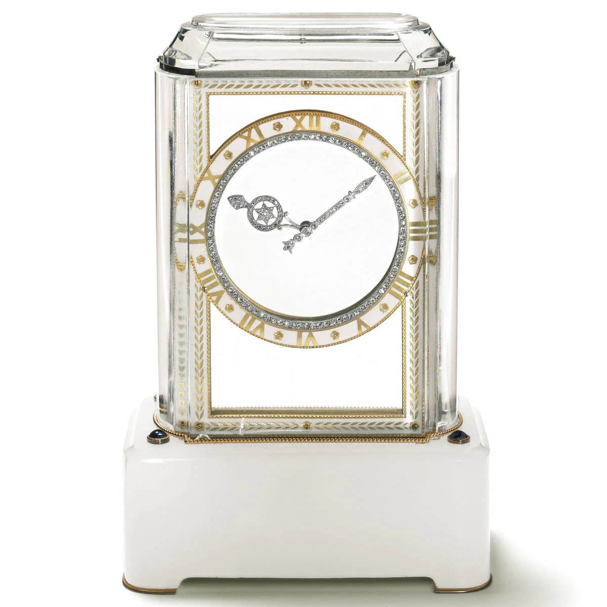 Выпущенные в 1914 году часы Pendule mystérieuse Modèle A изготовлены с применением платины, золота и хрусталя и декорированы бриллиантами розовой огранки. Покрытый белой эмалью прозрачный корпус часов установлен на основание из белого агата, украшенное 4 сапфировыми кабошонами. Прямоугольный механизм с 8-дневным запасом хода снабжен анкерным спуском с биметаллическим балансом. Настройка времени и подзавод механизма в этих часах осуществлялись при помощи ключа, спрятанного под основанием.