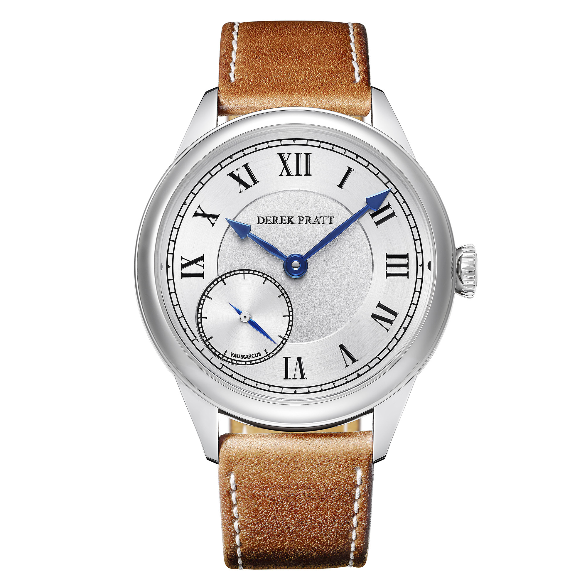 Внешне эти часы – образцовый пример вечной классики. Циферблат из мельхиора покрыт рутением. Минутная шкала и римские цифры часовой шкалы выгравированы прямо в циферблате и заполнены черным лаком. Строгий классический стиль красиво обыгрывают стрелки разной формы. Часы представлены в стальном корпусе 41,5 х 12,6 мм. Изюминка модели – механизм с ремонтуаром постоянной силы, отдающий дань уважения наследию британского часовщика Дерека Пратта. Ориентировочная стоимость часов составляет CHF 100,000.