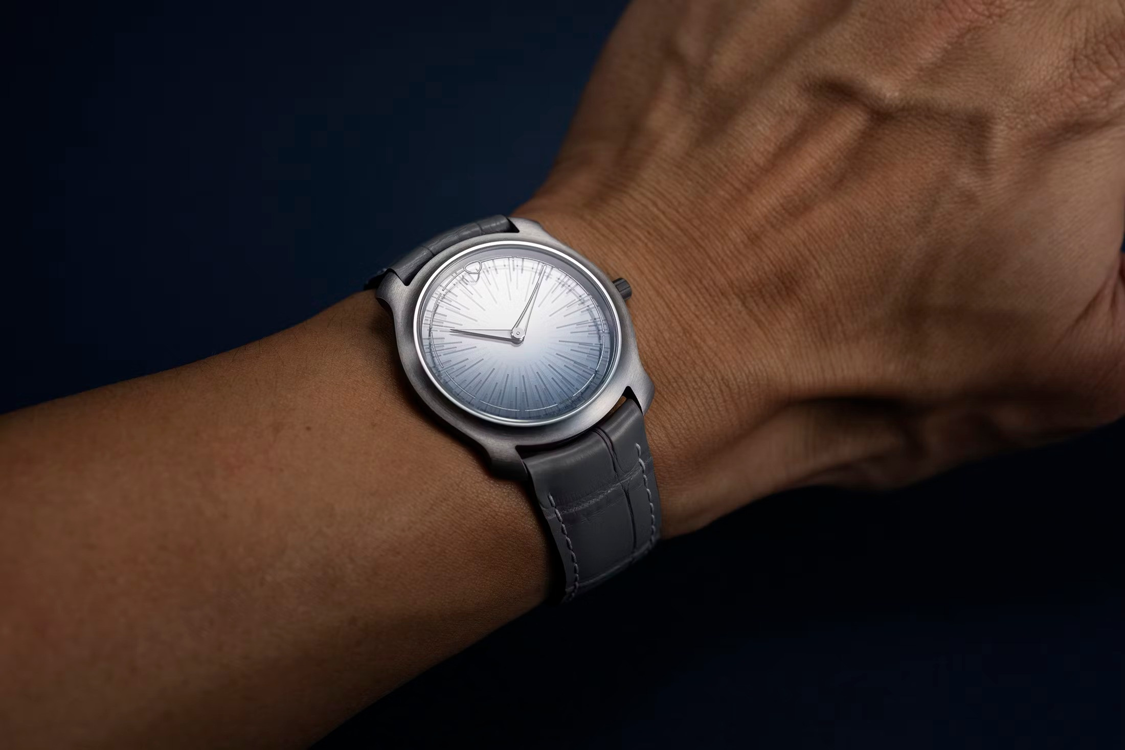 Мартовская новинка от малазийского бренда MING. Помимо корпуса из моноблочного тантала (35 х 6,9 мм) часы удивляют циферблатом. Он имеет двухслойную структуру, где нижний слой – это тонкая пластина из фрезерованной латуни с CVD-покрытием, а верхний – это боросиликат, сквозь который просвечивает ненавязчивый узор. Внутри часов стоит ультратонкий механизм Frédéric Piguet с ручным подзаводом, впервые выпущенный в 1925 году. Выпуск лимитирован серией 10 экземпляров. Ориентировочная стоимость модели составляет CHF 29,500.