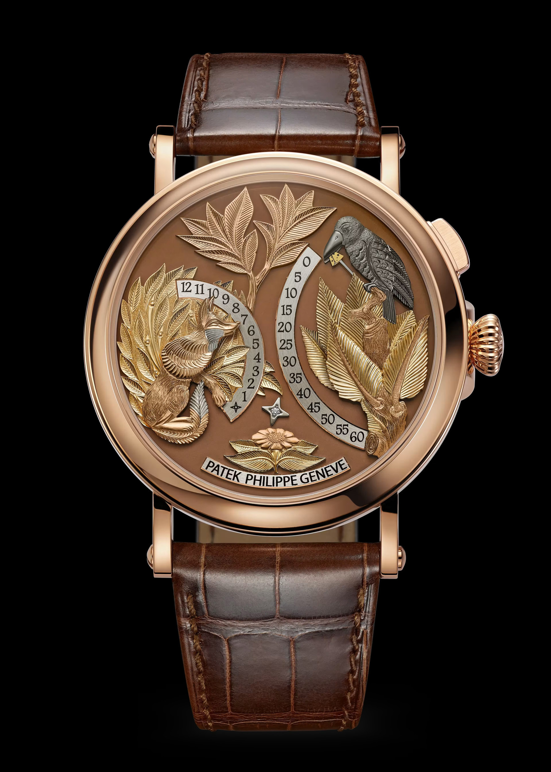 В рамках часового салона Watches & Wonders компания Patek Philippe представила неожиданную новинку – наручные часы с автоматоном. Часы интересны по двум причинам: а) это первый автоматон в современной истории бренда; б) на циферблате модели воссоздан сюжет басни Жана де Лафонтена «Лиса и ворона», которая русскоязычному читателю знакома по творчеству Ивана Андреевича Крылова.