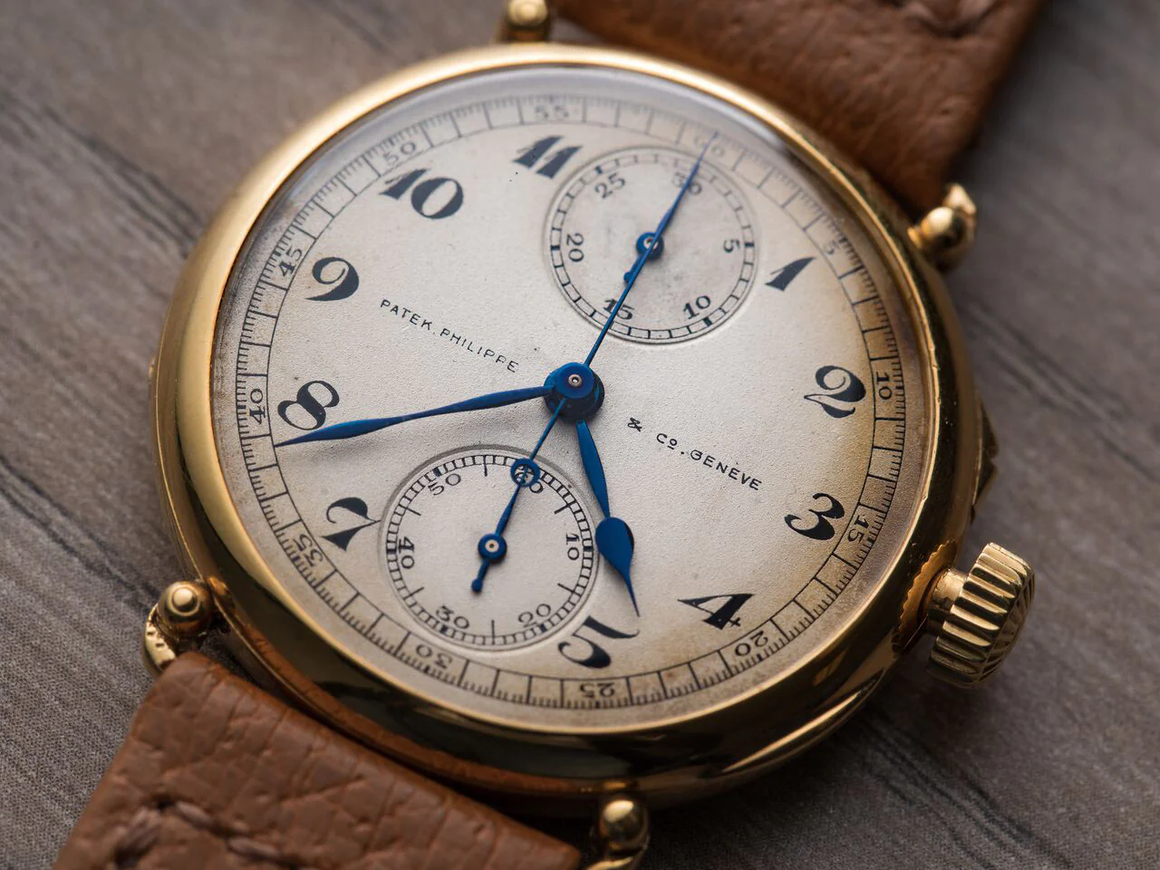Модель, который мы посвятили эту статью, является одним из самых ранних хронографов Patek Philippe. Начнем с того, что это коллекционные часы. Таких моделей было выпущено всего 27 штук, 16 из которых, включая героя нашей статьи, имеют корпус типа Officer с откидной задней крышкой на шарнирных креплениях. Конкретно этот экземпляр, который был выставлен на продажу на женевском аукционе Phillips в ноябре 2018 года, выпущен в 1924 году.