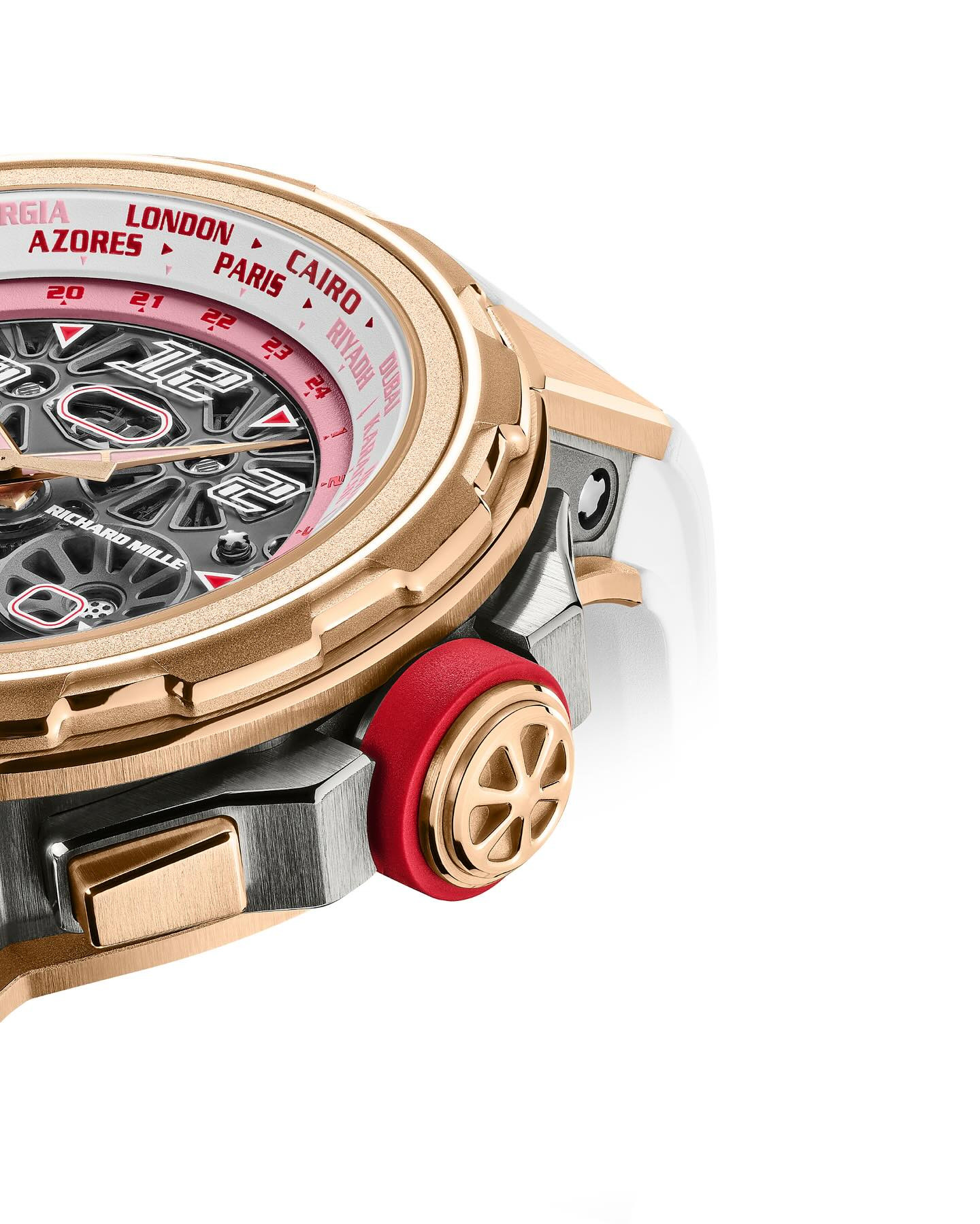 Компания Richard Mille представила новую модель с функцией мирового времени, и она кардинально отличается от стандартных волдтаймеров. Главное отличие состоит в том, что настройка времени в часах осуществляется не при помощи заводной головки и специальных кнопок, а посредством безеля.