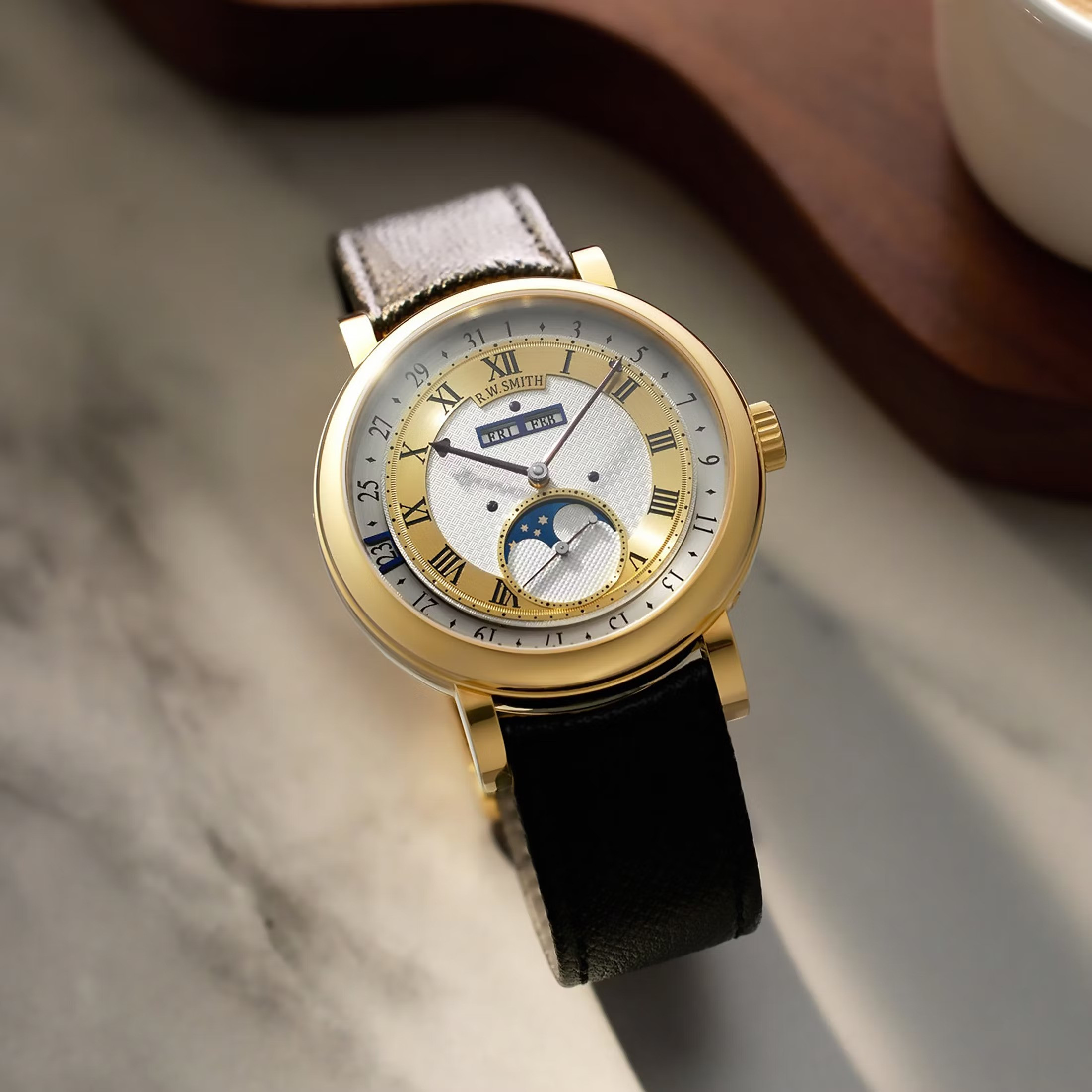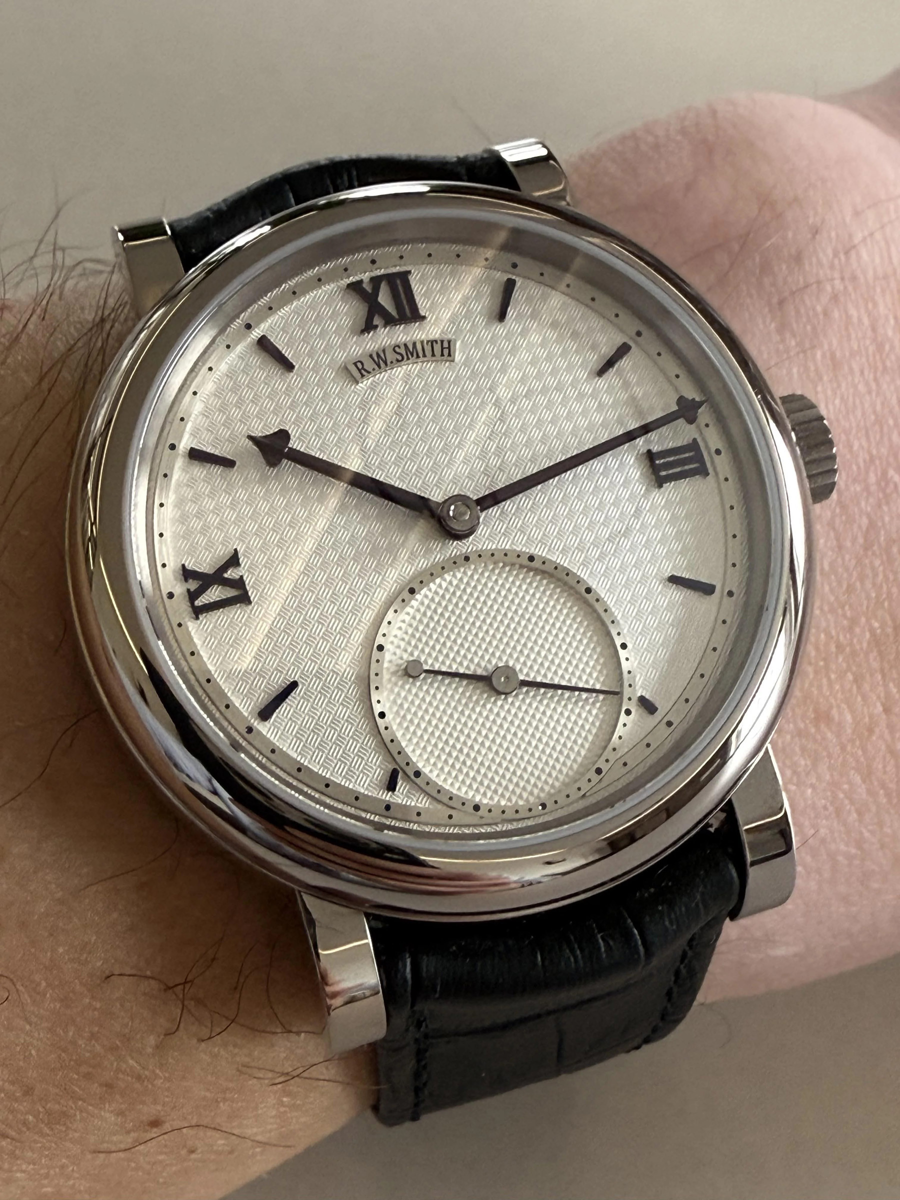 Изначально Смит задумал выпустить серию из 12 экземпляров и даже нашел подходящую партию винтажных механизмов прямоугольной формы, которые можно было взять за основу. Он извлек из них заводные барабаны, зубчатые передачи, а также спусковые и заводные механизмы. При этом самостоятельно изготовил платины, корпуса, циферблаты, стрелки и дополнительное усложнение в виде ретроградного календаря.