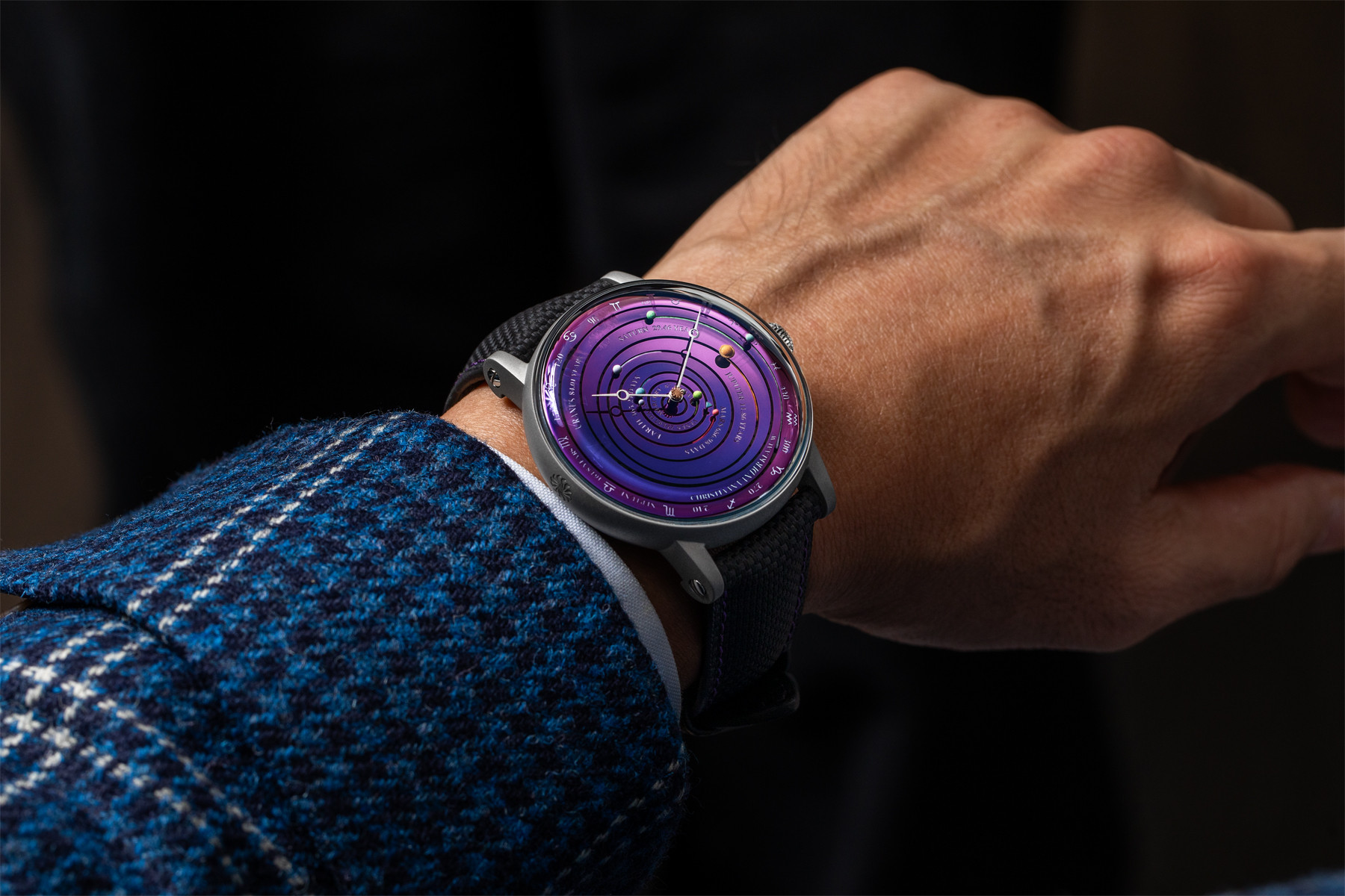 Циферблат выполнен из оксидированного кремния. Планеты на нем подсвечены люминофором. Подсветкой обработаны и надписи рядом с планетами, которые обозначают период вращения каждой из них. Под циферблатом стоит механизм с автоподзаводом и 60-часовым запасом хода. Выпуск часов лимитирован серией 6 экземпляров. Ориентировочная стоимость модели составляет €157,000.