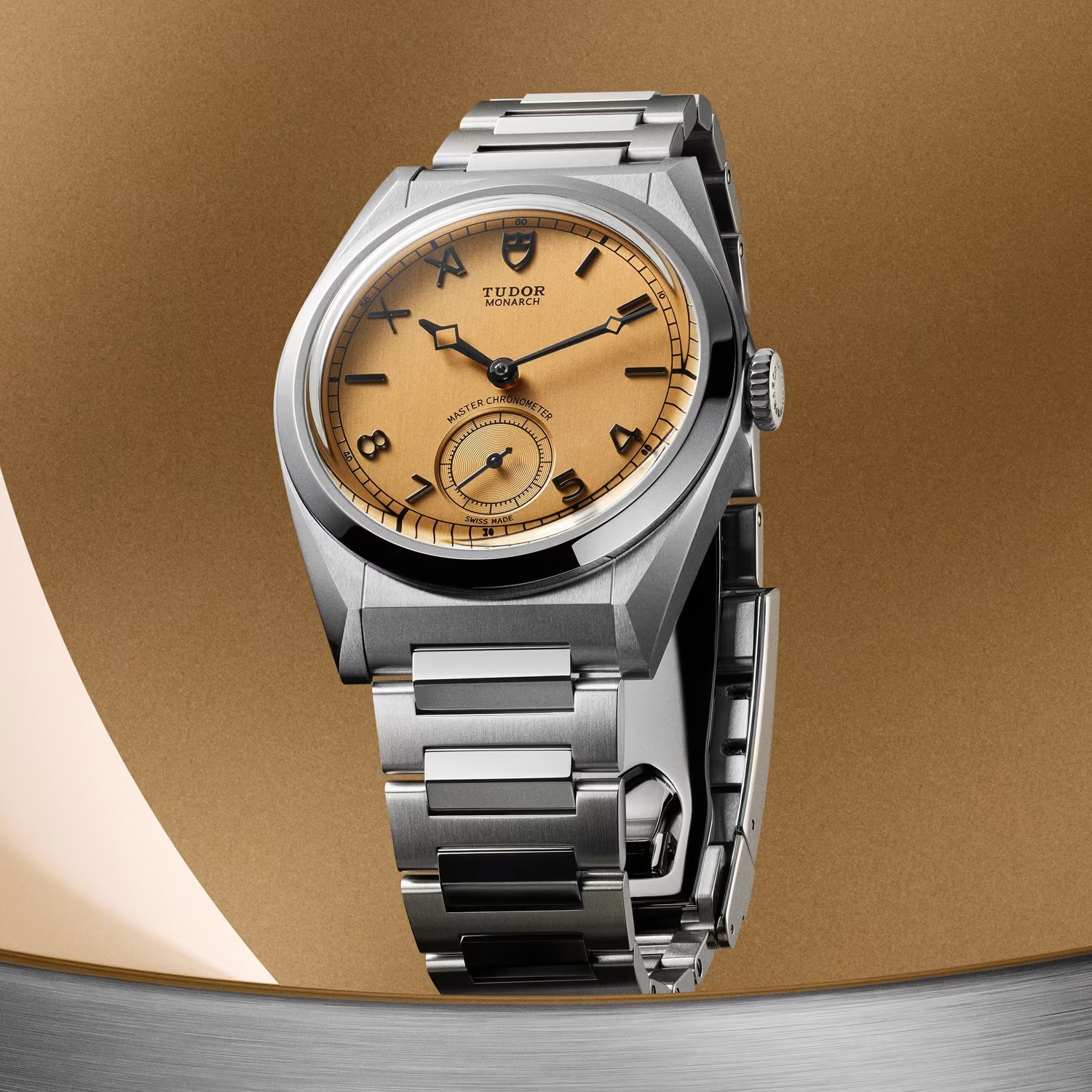 Модель из линейки Monarch, которую Tudor вернула в свой каталог в честь 100-летия бренда. Часы получили стальной корпус 39 х 11,9 мм. Силуэт корпуса отличается эффектными острыми углами и угловатыми срезами по бокам.