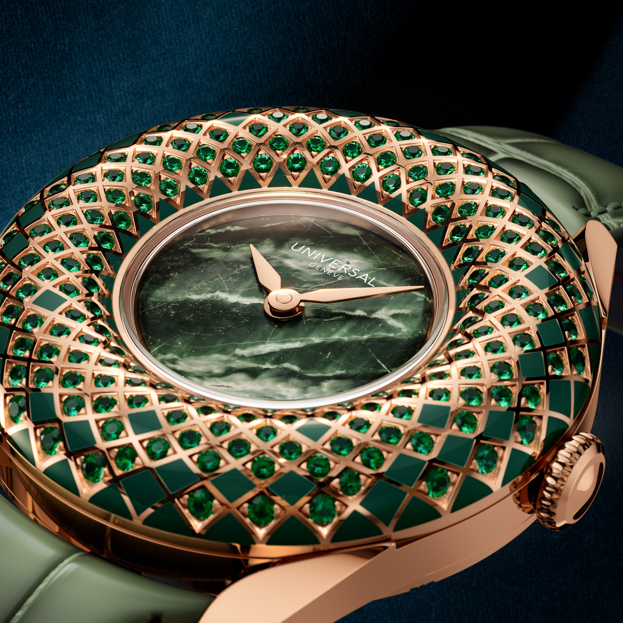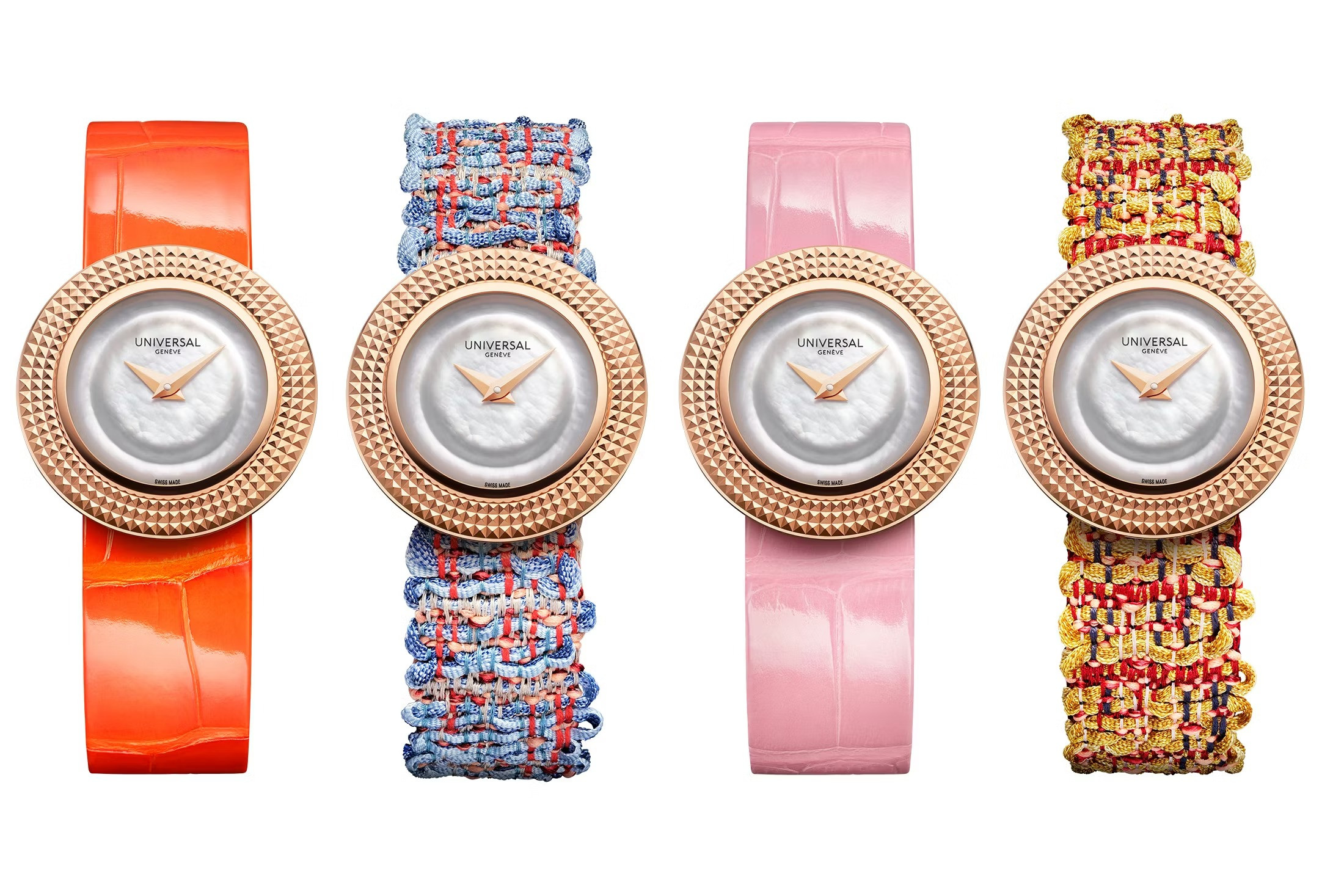Возрожденный в конце 2023 года бренд Universal Genève показал первые женские модели из своего каталога. Часы черпают вдохновение в дизайне 1950-1960-х годов, который в свою очередь восходит к стилю New Look, созданному революционером мировой моды Кристианом Диором в конце 1940-х годов.