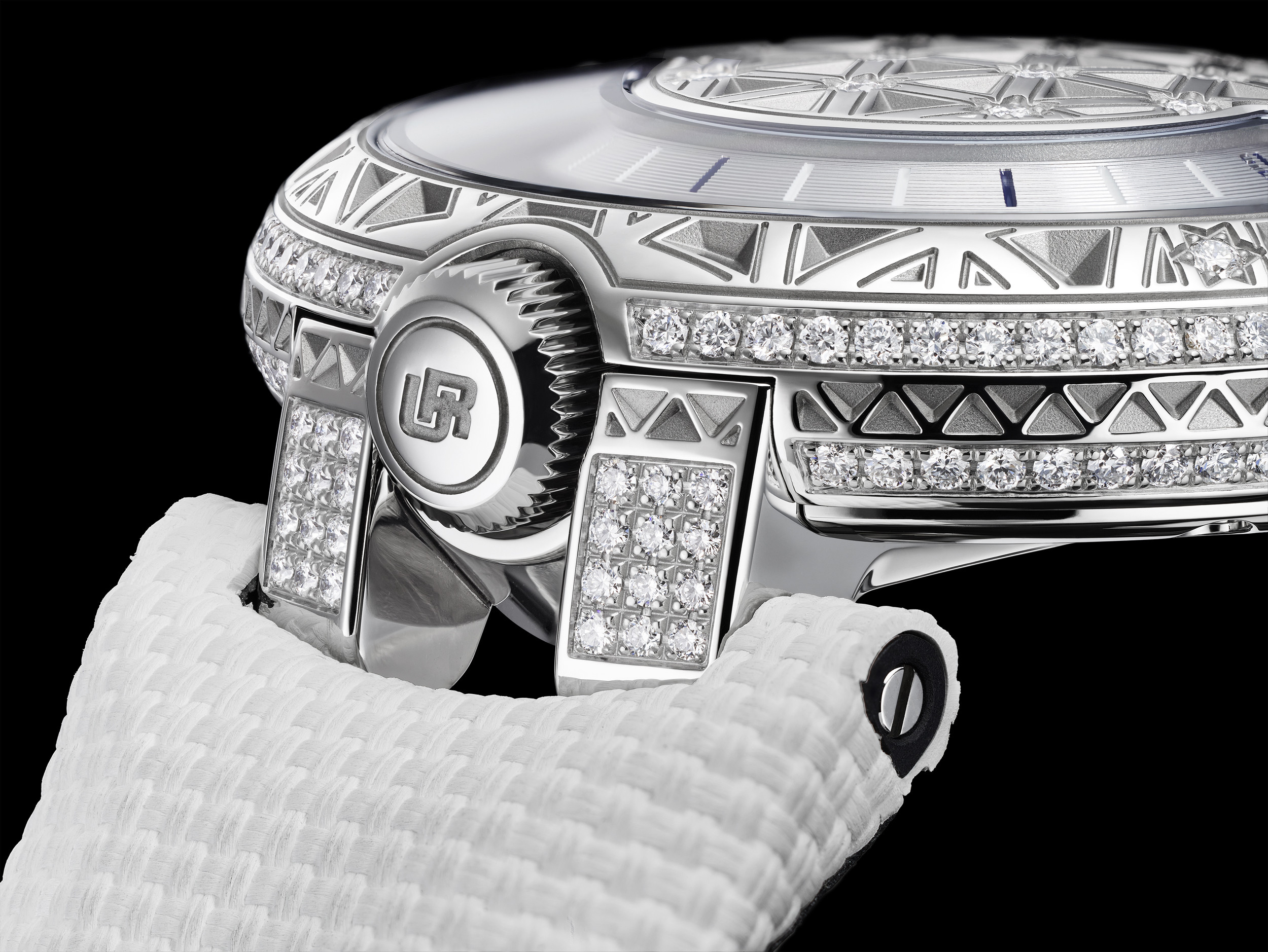 Носить часы предлагается на белом текстурированном ремешке из каучука, снабженном черной подкладкой из телячьей кожи. Выпуск лимитирован серией 25 экземпляров.