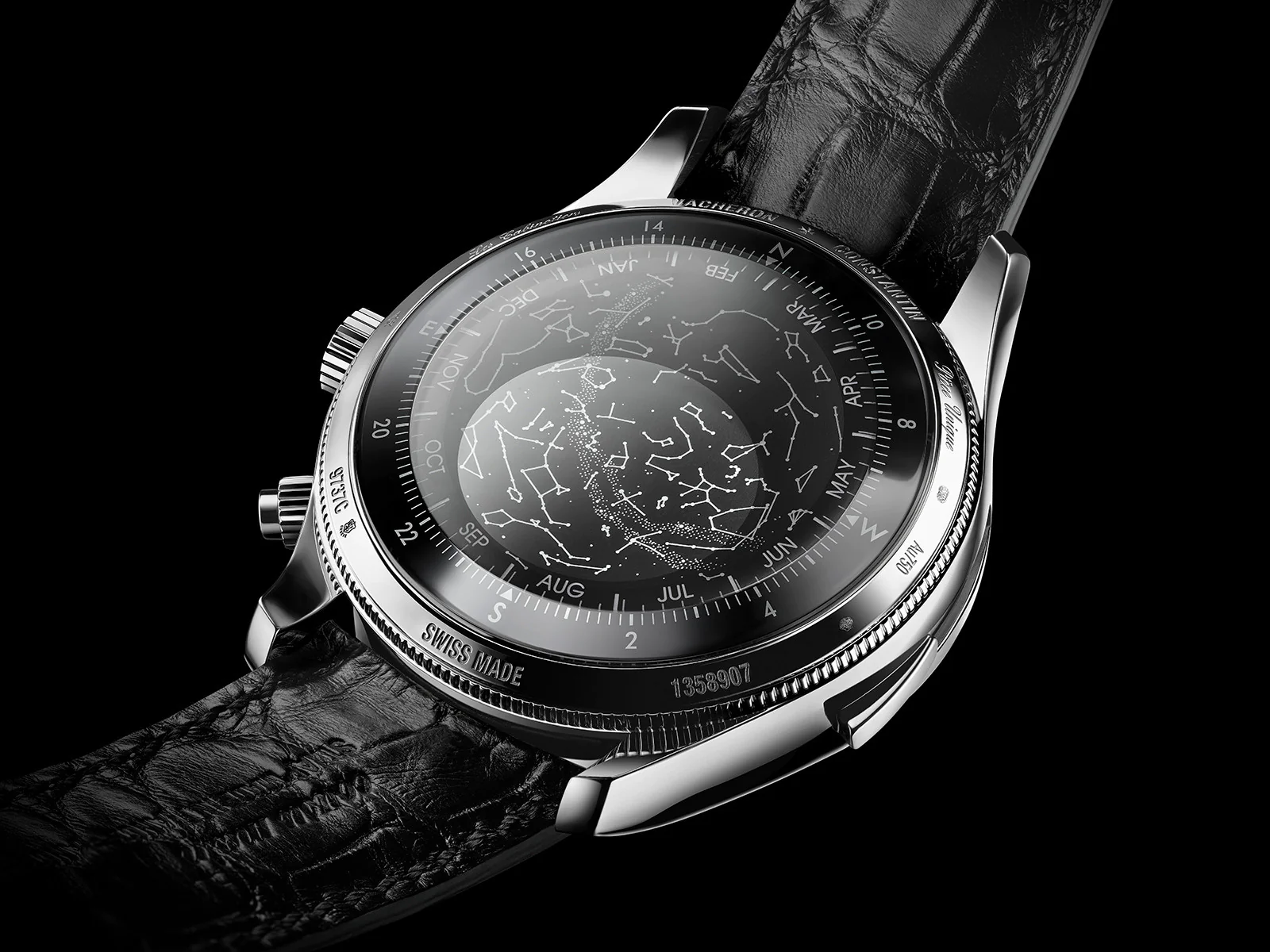Принадлежность этой модели к миру высокого часового искусства четко обозначена присутствием такого изыска, как карта звездного неба. Мастера Vacheron Constantin поместили на часы ночное небо Женевы, которое здесь просматривается так четко, как будто смотришь в телескоп. Карта совершает вращение вокруг своей оси за 23 часа 56 минут – период, равный звездным суткам. Помимо красивейшего кусочка Млечного пути на тыльной стороне корпуса представлены индикация звездного времени, сторон света и месяцев.