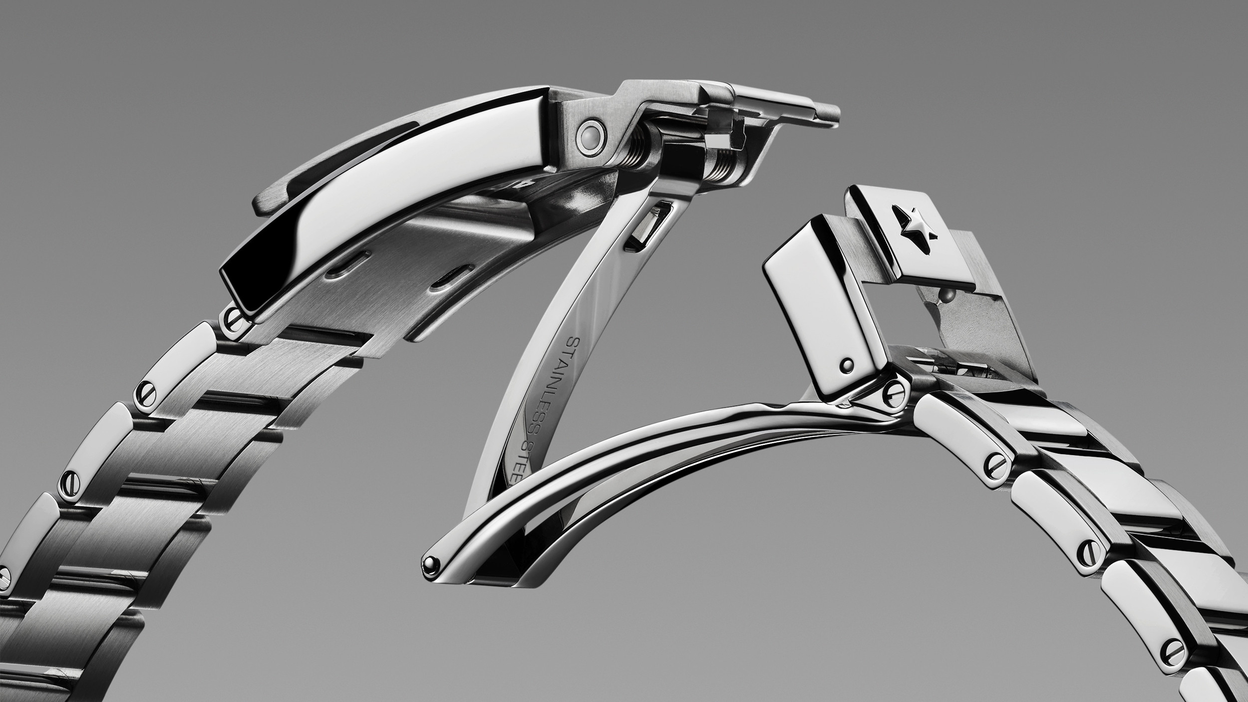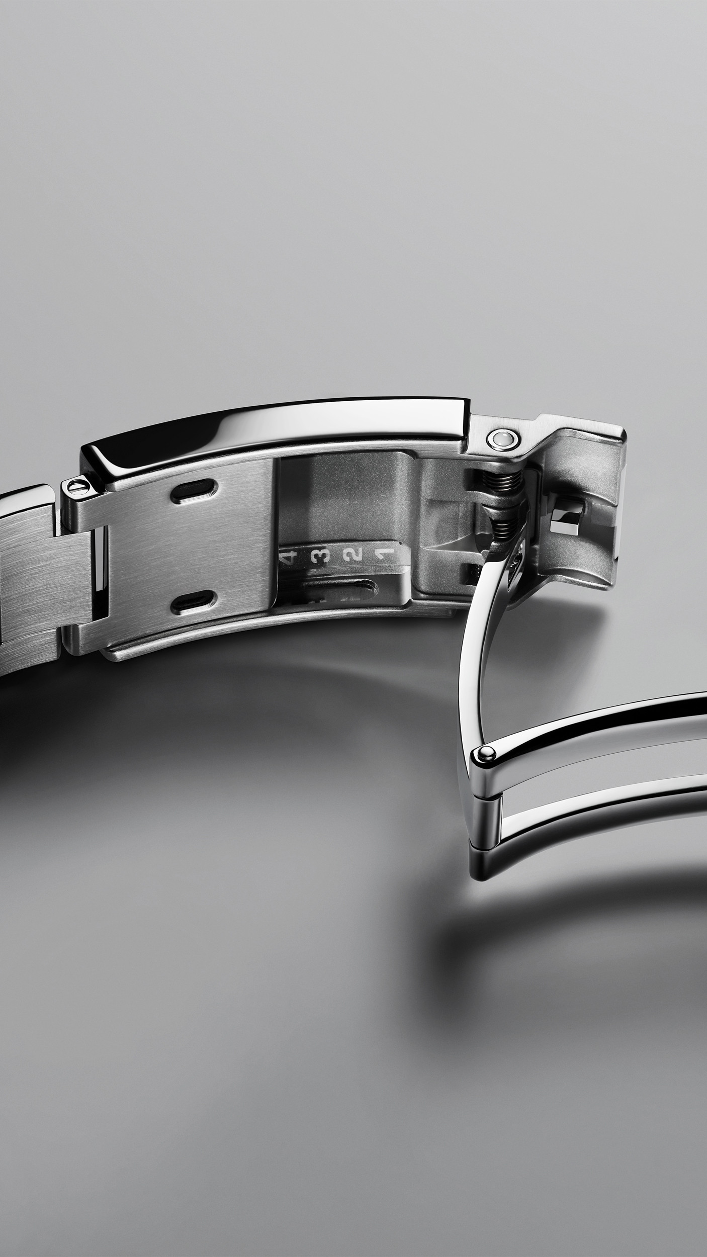 Удлинить браслет можно, не снимая часы с запястья. Регулировка 5-ступенчатая с шагом в 2 мм. Осуществляется поднятием откидной крышки. С технической точки зрения застежка состоит из 41 детали, включая 4 двойных и 2 одинарных собачки. Ее разработка потребовала 3 лет или 1800 часов настройки. Прочность застежки подтверждена моделированием, имитирующим более 10 лет эксплуатации. В будущее эту застежку планируют внедрять в другие модели, адаптируя конструкцию ко всем браслетам из коллекции Chronomaster Sport.