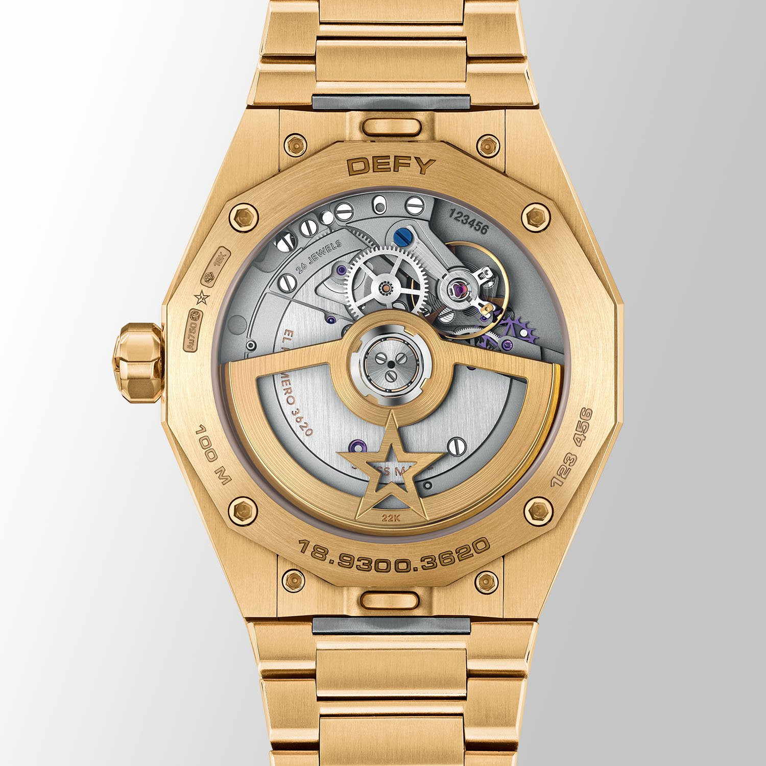 Другие объединяющие детали в дизайне – граненые стрелки из цельного золота и позолоченные часовые индексы, покрытые люминесцентным составом Super-LumiNova SLN C1. Вся тройка оснащена механизмами на базе калибра El Primero, отличительная черта которых – ротор из 22-каратного золота со звездой внутри.